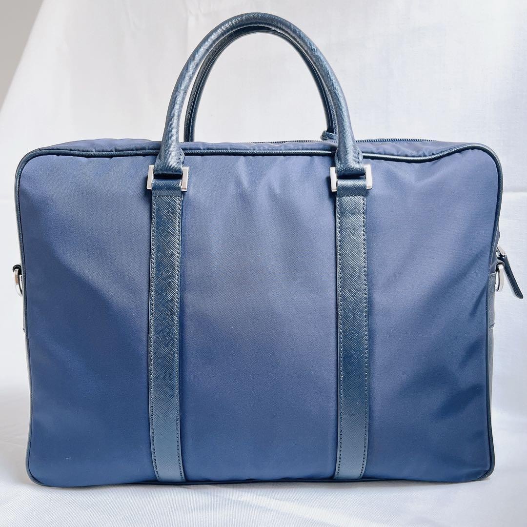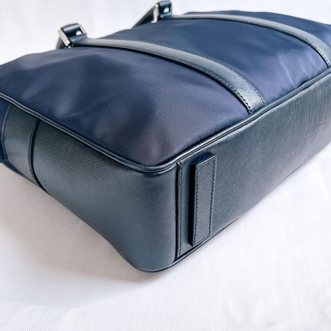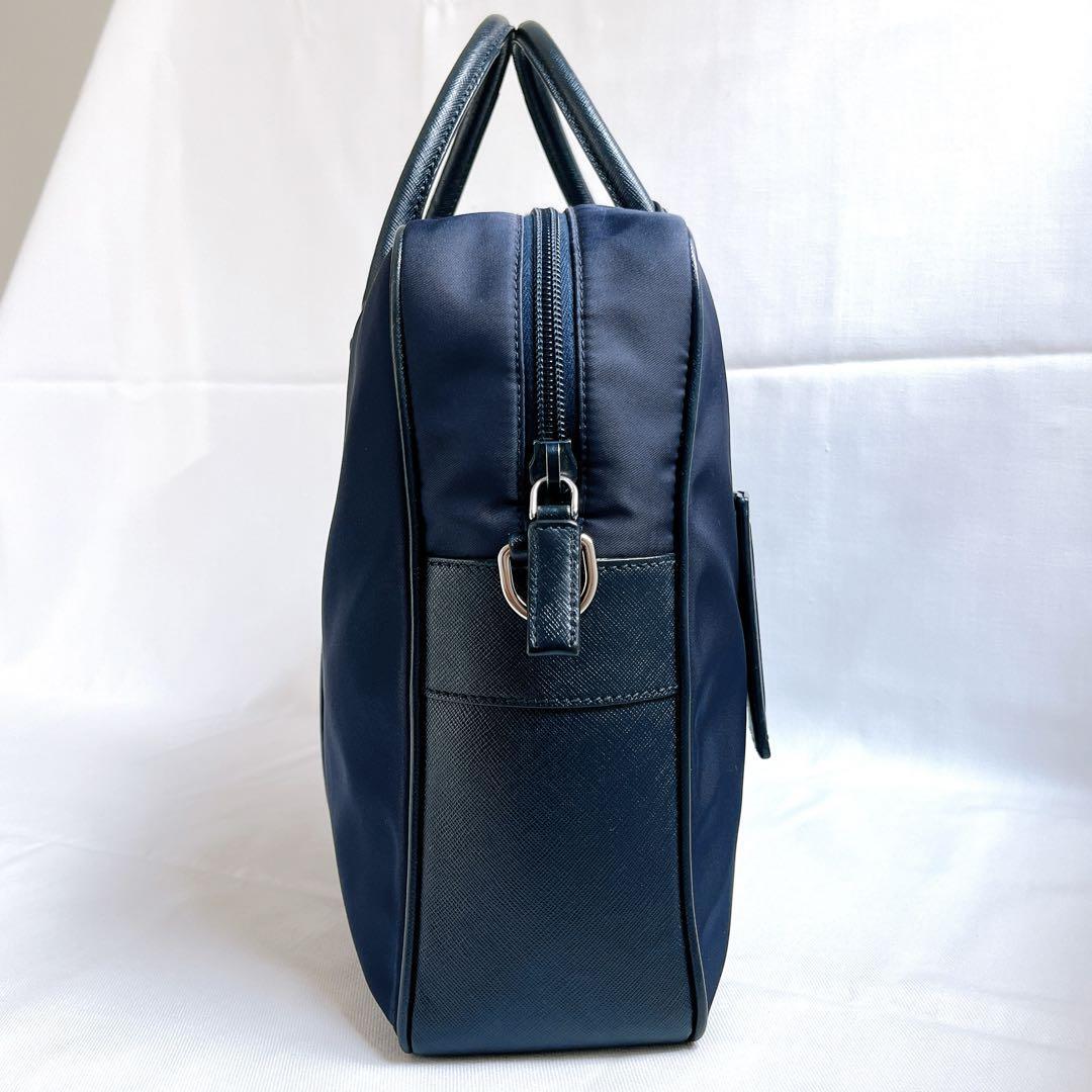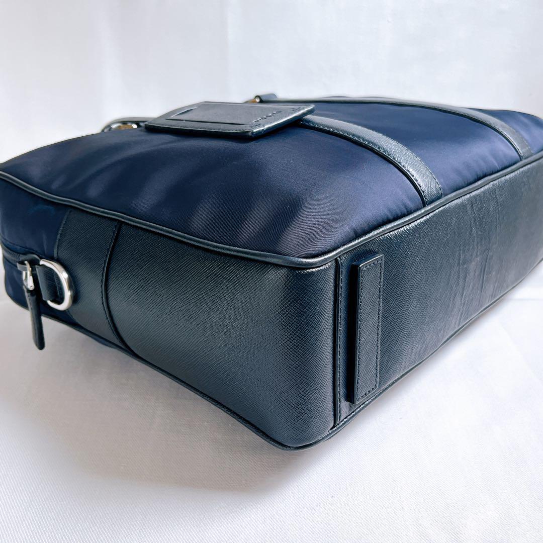 美品 プラダ ビジネスバッグ 2VE661 2way サフィアーノ ネイビー PRADA