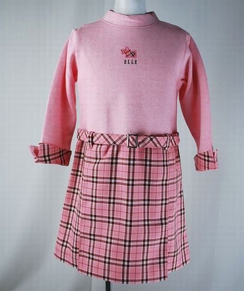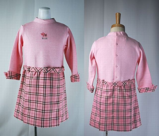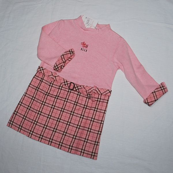 ELLEの無地とチェックの切り替えで、プリーツスカートになった上品なお出かけワンピースです。