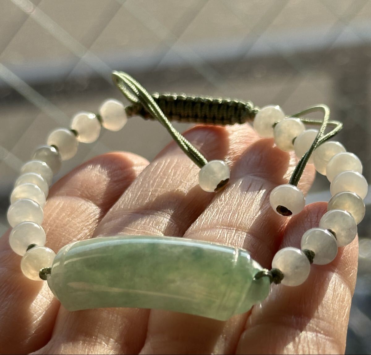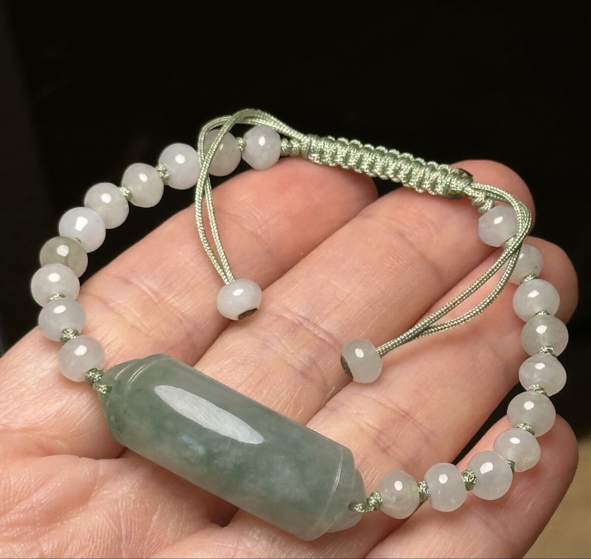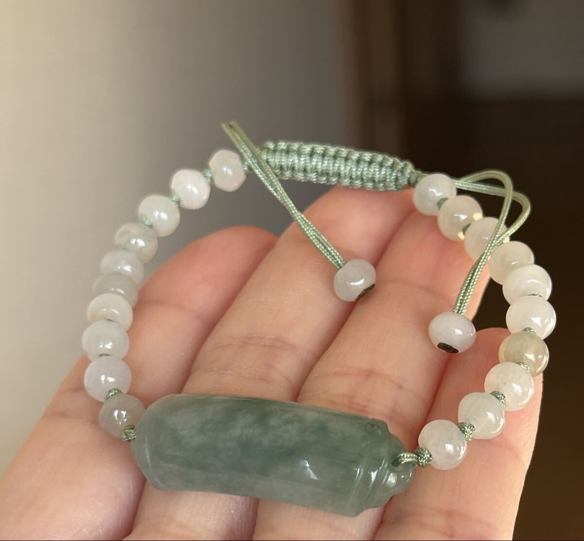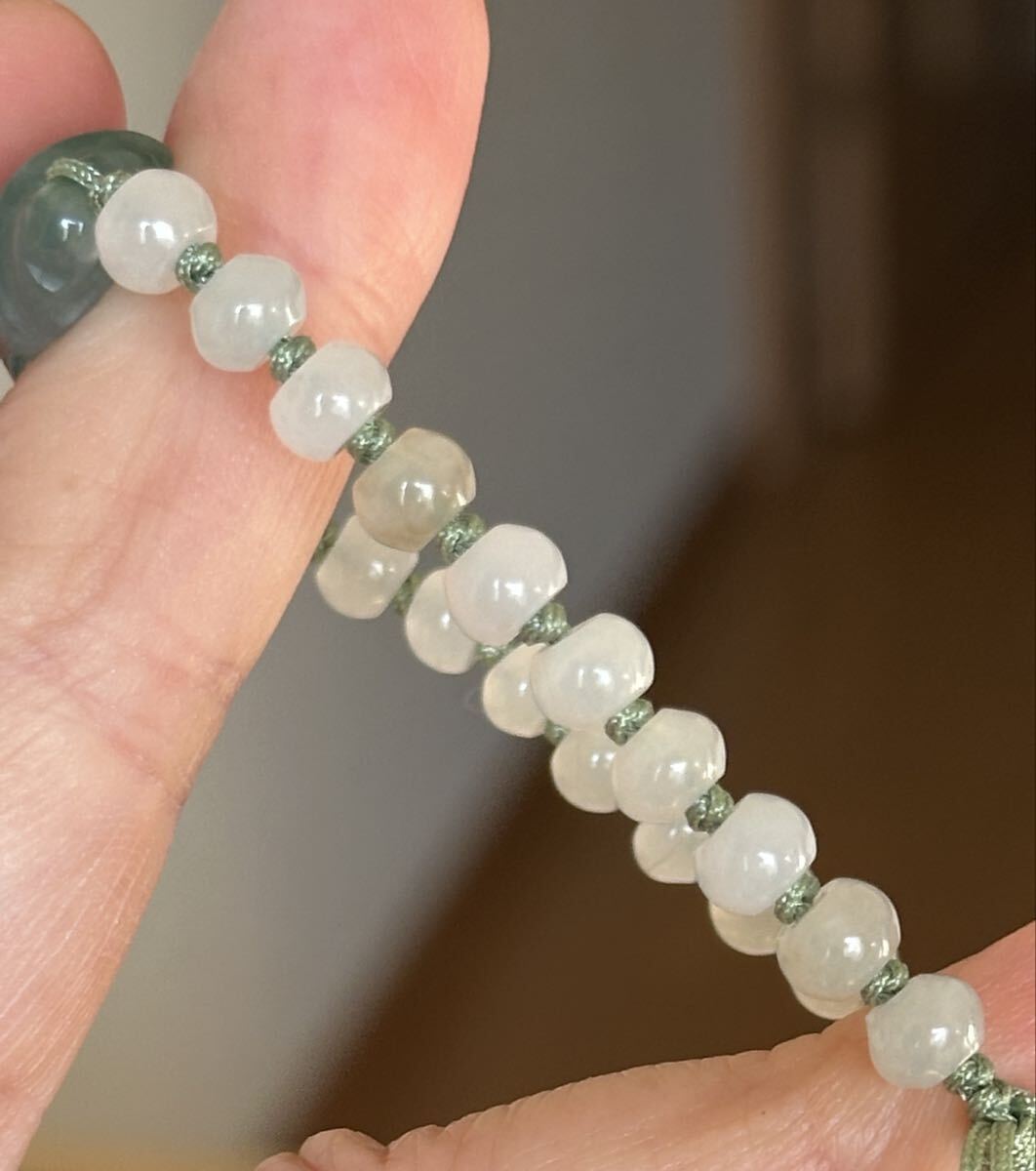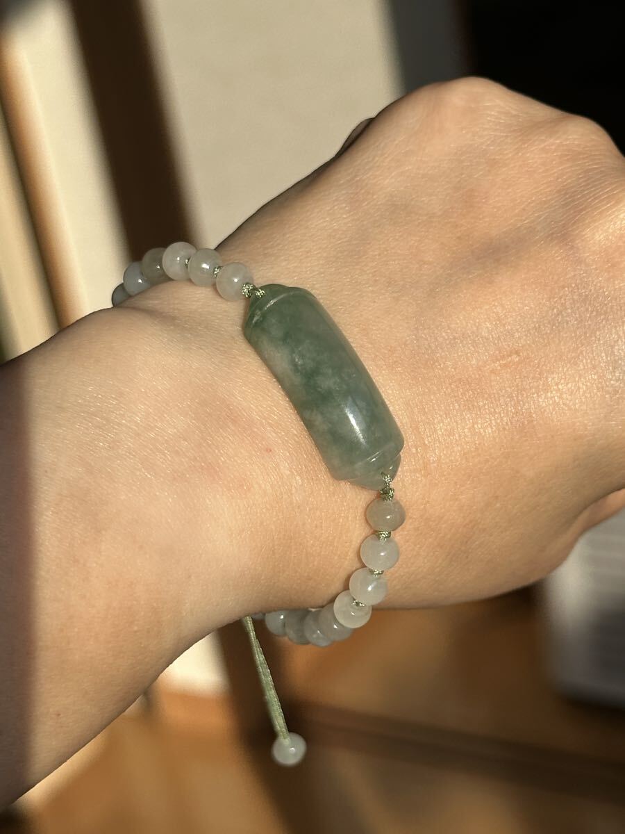 昔入手してコレクションにしているミャンマー本翡翠のプレートと5.5mmのそろばん型ビーズでブレスレットを作りました、何も未使用で質のいい翡翠です。