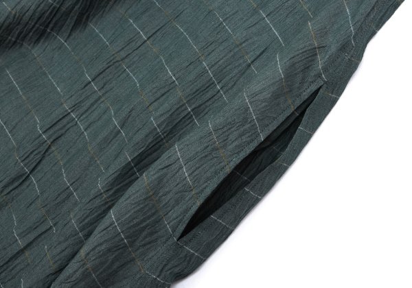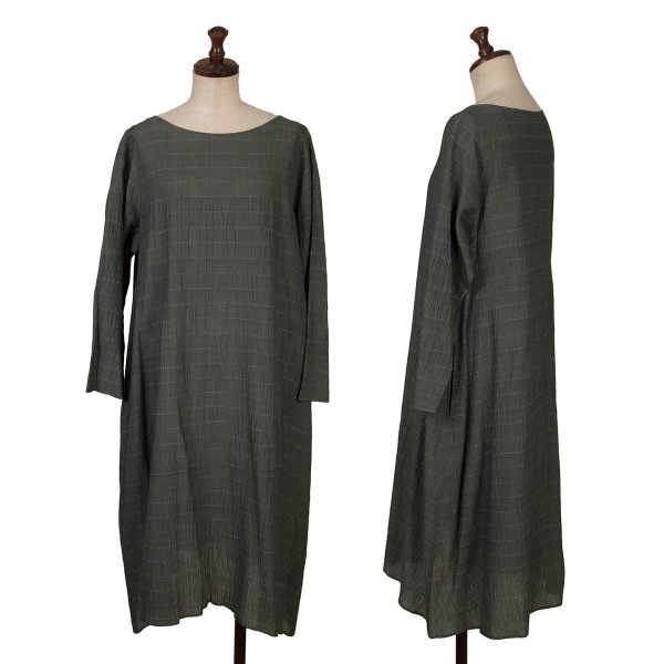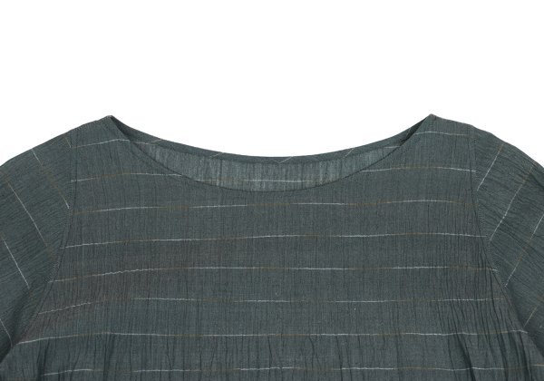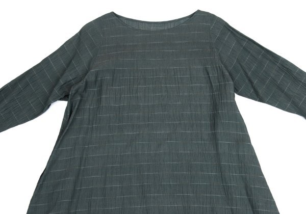 ヨーガンレールJURGEN LEHL ピンボーダーシワ七分袖チュニック 深緑M |