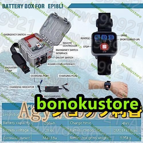 電気推進パラメータ:モーター出力: 160W速度: 3-6 km/hバッテリー寿命: 2 ~ 3 時間最長航続距離:20KM梱包体積: 450X435X120MM総重量: 2KGバッテリーパラメータ:正味重量/総重量: 3.7KG/3.86KG防水等級:IP7電圧: 24V容量: 288wh充電電流: 連続動作電流: 10A/1.2H使用温度:0~45℃梱包体積: 235X195X155MM