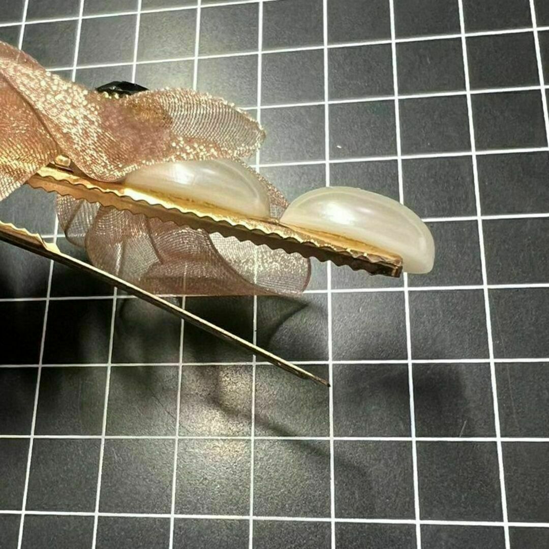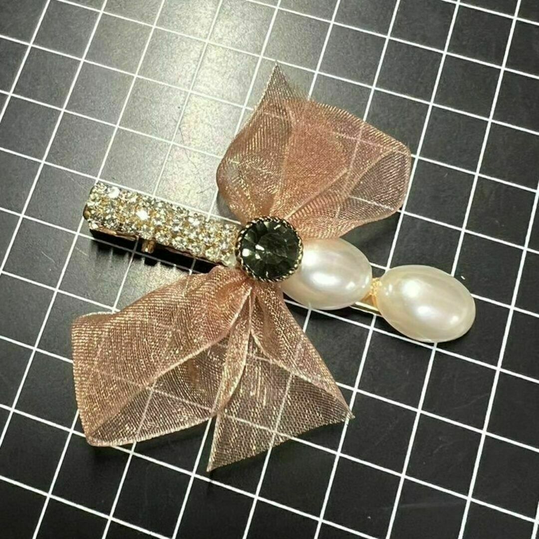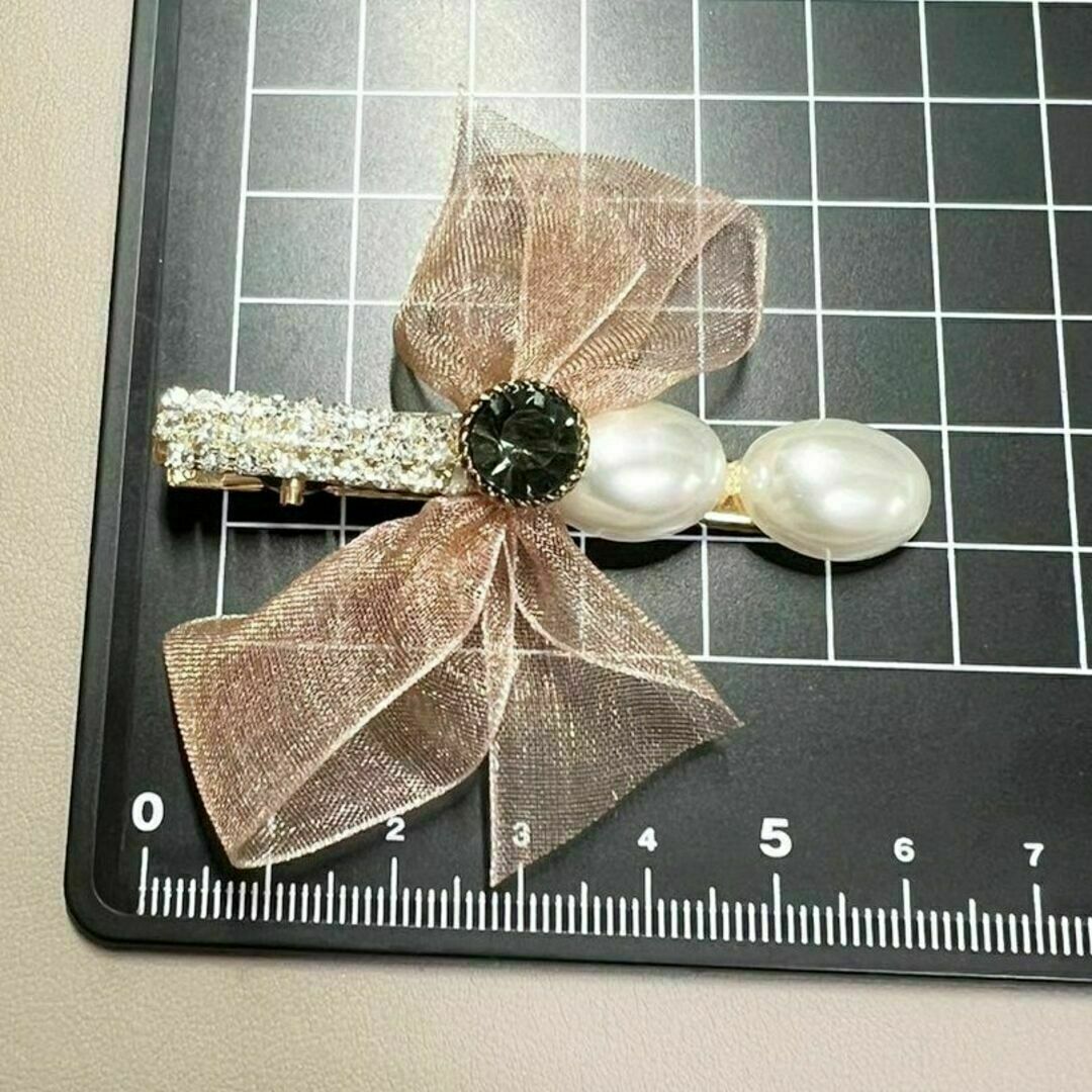 E310 匿名配送 ヘアクリップ ピンク リボン パール ラインストーン ヘアピン 前髪クリップ サイドグリップ ヘアアクセサリー