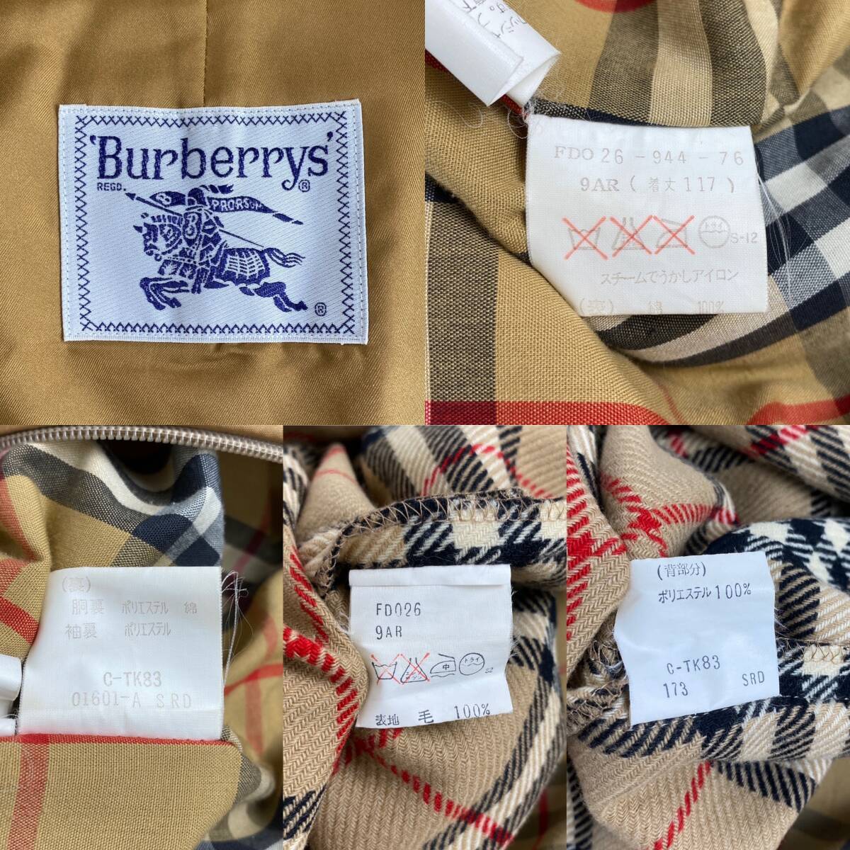 【状態】肩パッド 使用感 裏表全体的にシミ インナー裾に穴 袖口・裾の擦り切れ 全体的に色あせ センターベントのボタン欠損 左下ボタン糸色違い(写真を参考に)