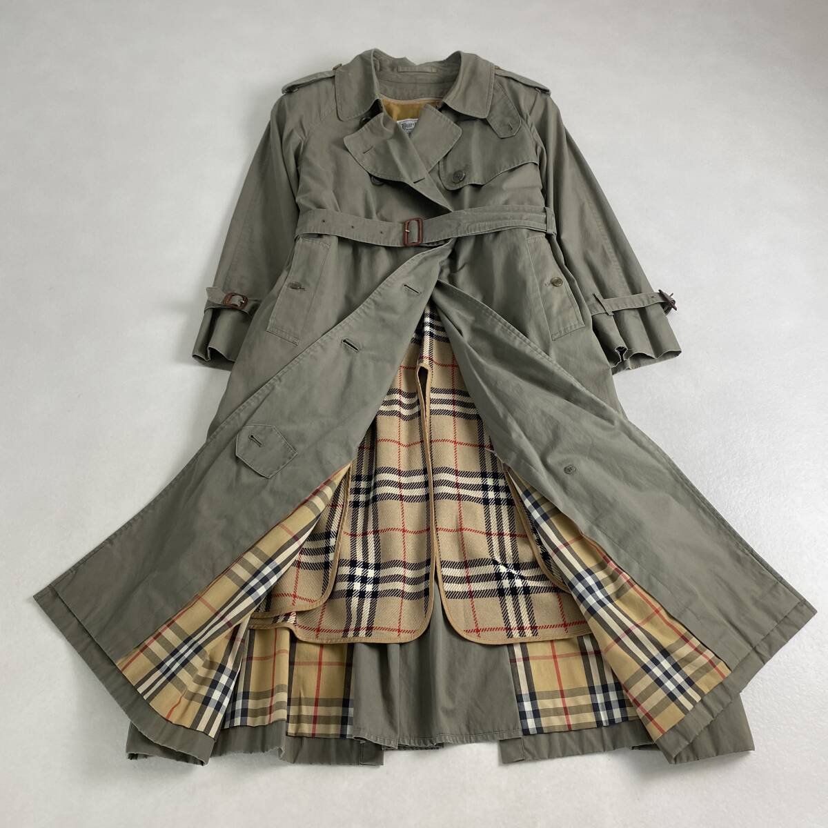バーバリーズ トレンチコート 白タグ 玉虫色 ベルト BURBERRYS ノバチェック ライナー付き カーキ 9AR M・L相当