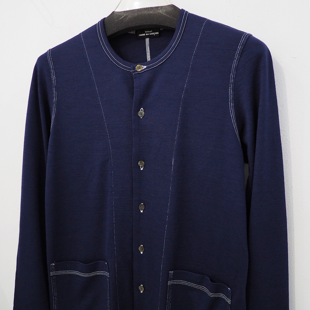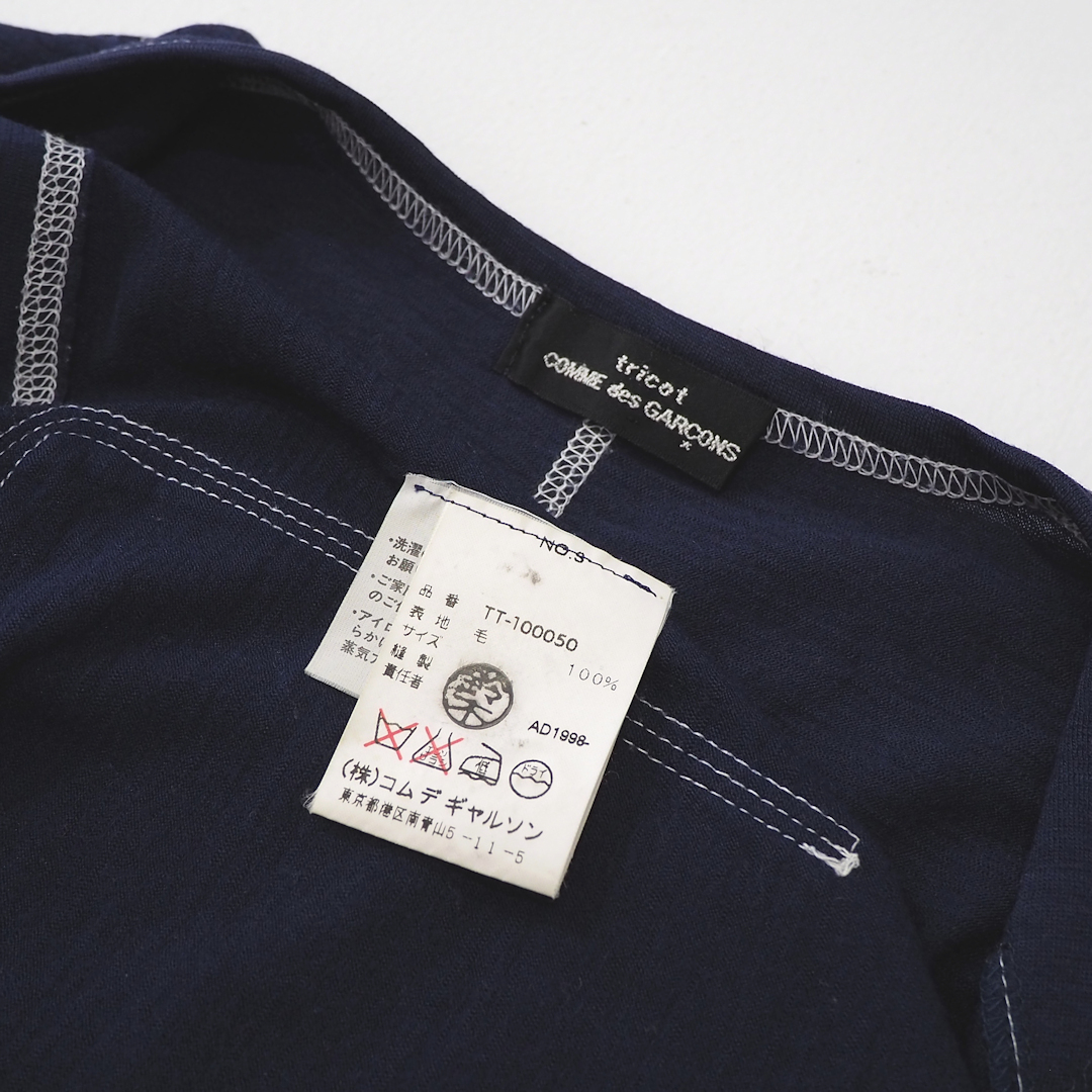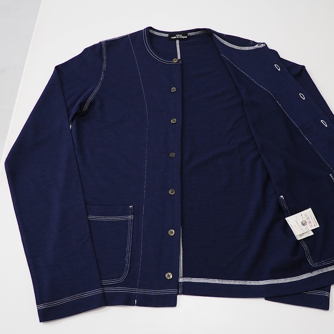 90s トリコ コムデギャルソン 丸首 カーディガン 紺 ネイビー レディース S M XS tricot COMME des GARCONS 薄手 ニット OLD 細身 タイト