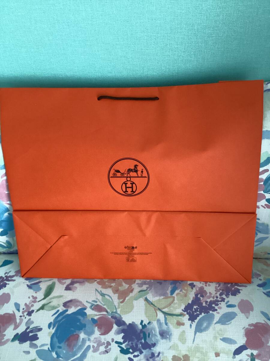 サイズ 約60×約49×約マチ19cm(誤差はお許し下さい) 別付けの紙袋ですから未使用ですが、画像撮影・サイズ計測時、触れています。 サイズ違いですが、エルメスから届いた時の梱包姿を画像4枚目に載せています。画像4枚目参考が画像です。
