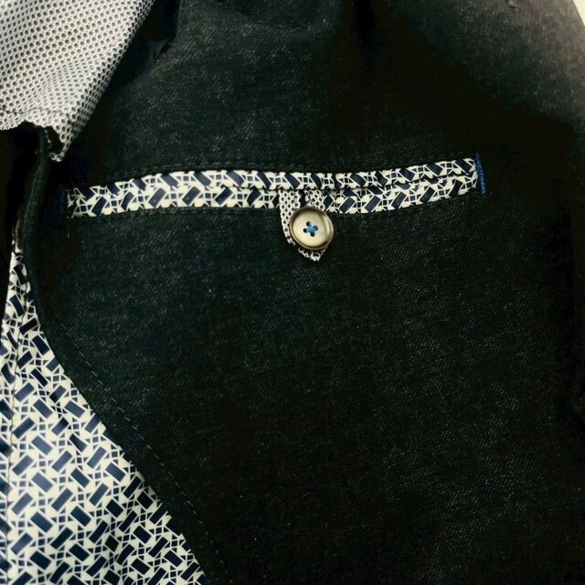 こだわりの袖のボタンや内のデザインにもが見える一着です。