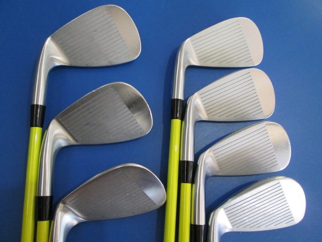 ◎【値下げしました】USEDアイアン5-9・P・Aの7本セットです。グリップはエリートですが汚れがあります。人気のMTカラーシャフトが装着です。石噛み、当たり傷があります。ソールに擦り傷、フェースに打球痕、使用に伴う細かな傷がございますが程度良好です。重量・バランスは5Iでの計測です。ぜひご検討下さい。
