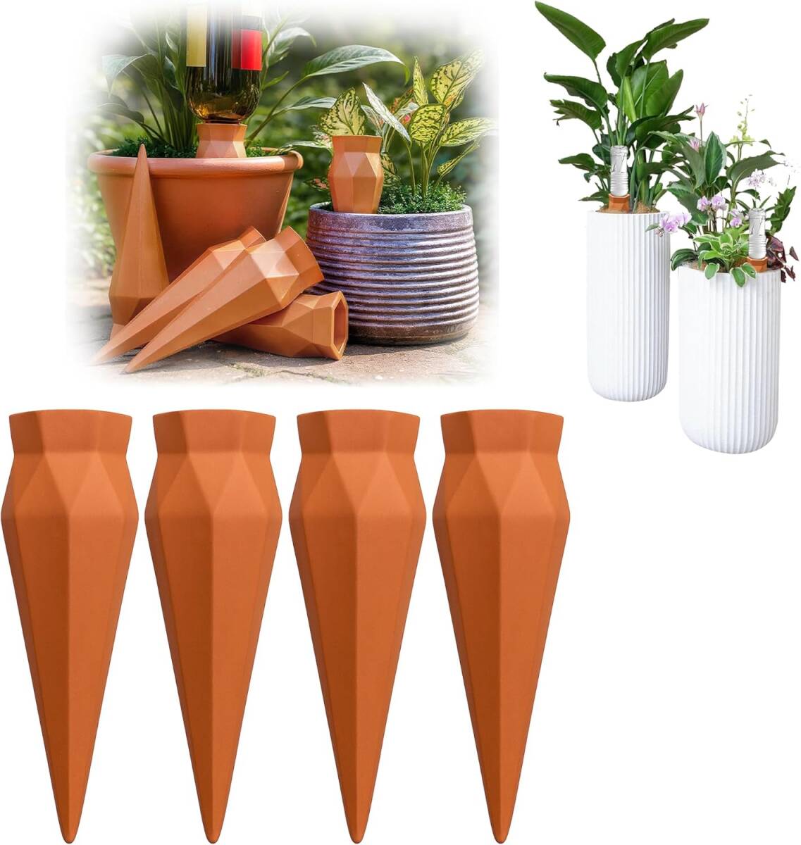GOKEI 自動水やり器 【植物育成のプロW監修】 4本セット 自動給水 土に挿すだけ ペットボトルで使用可能 素焼きテラコッタ製 自動水やり機 ガーデニング 鉢植え 観葉植物 園芸 ガーデン お出かけ 留守 給水ボトル みずやり 幾何デザイン 4本セット