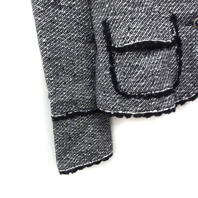 エポカ EPOCA ツイード オープンカラー ジャケット シングルボタン 38 ブラック 黒 /FT22 レディース