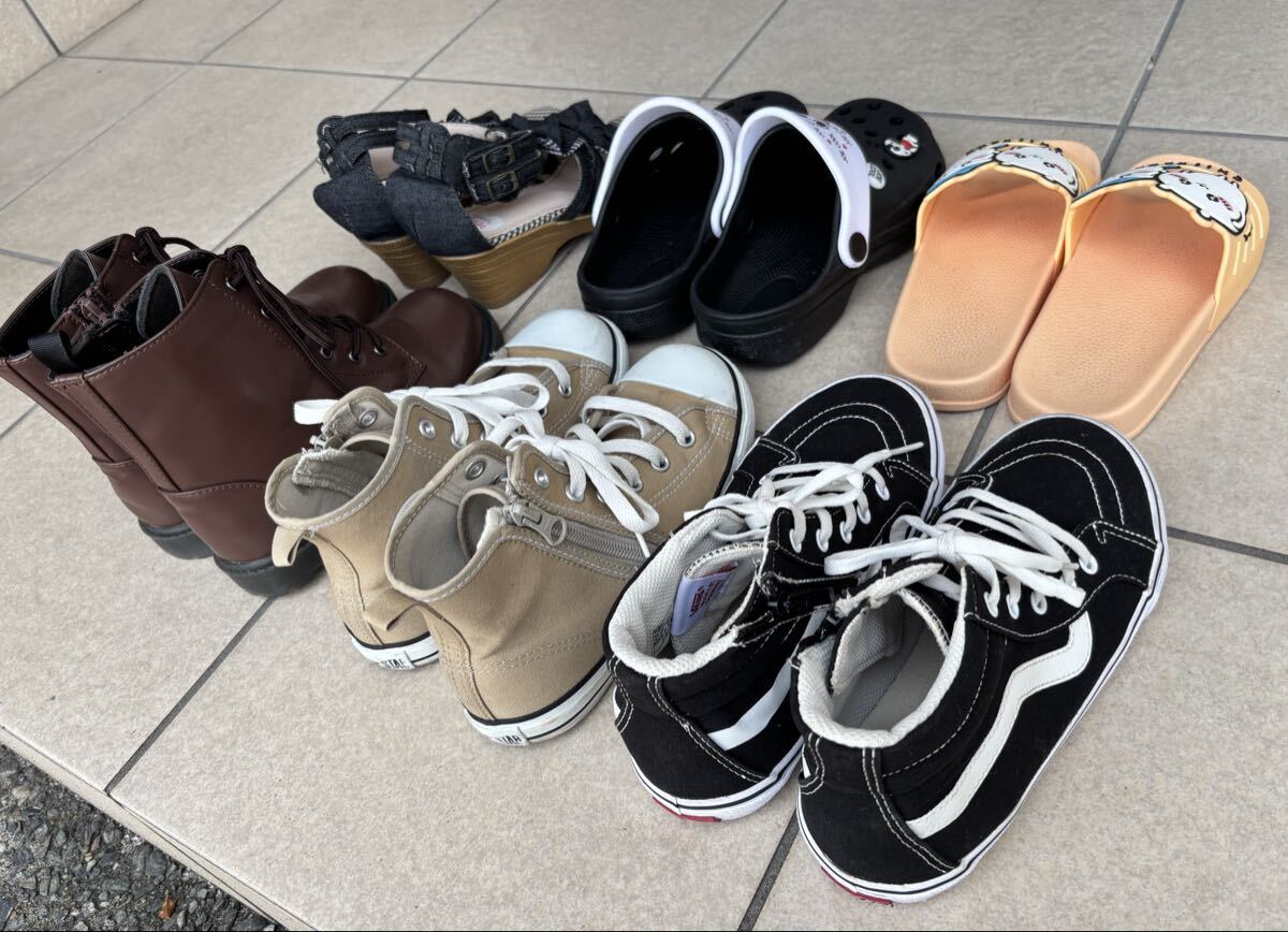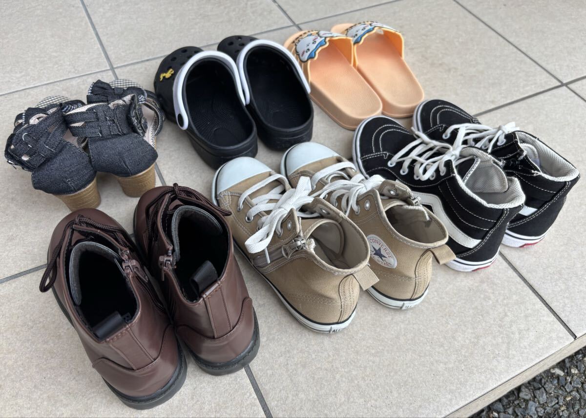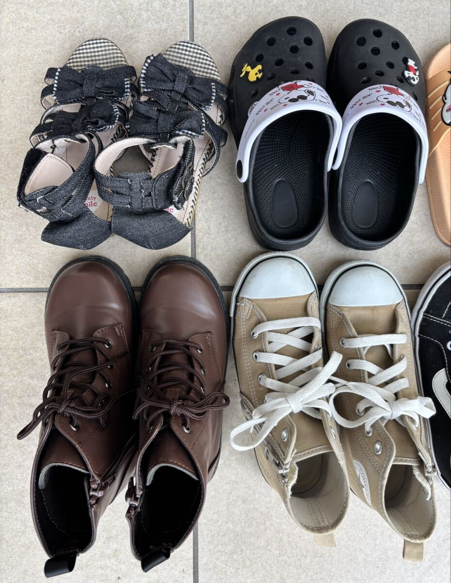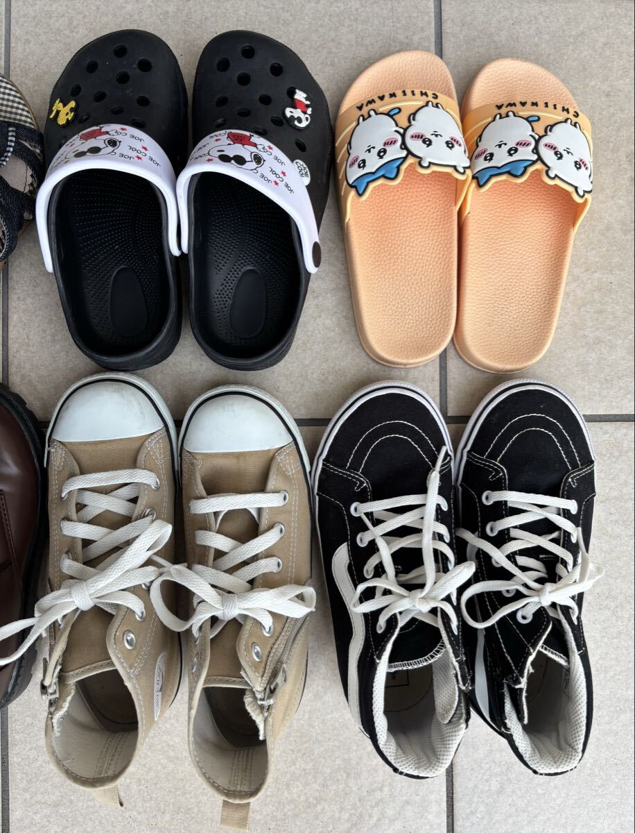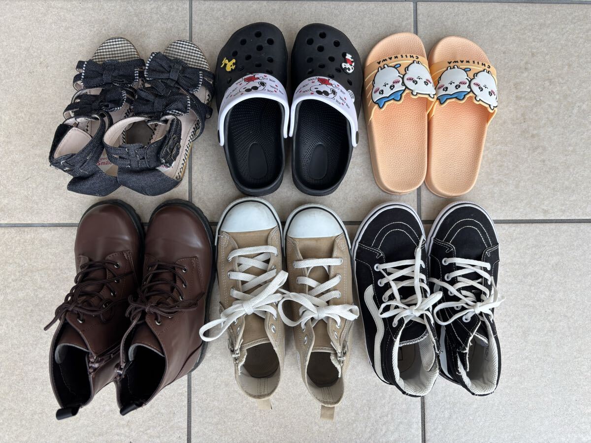 コンバース ベージュスニーカーとバンズ黒スニーカーとちいかわサンダルは21cm、その他は20cmになります。ブーツは一度しか履いてないので美品です。