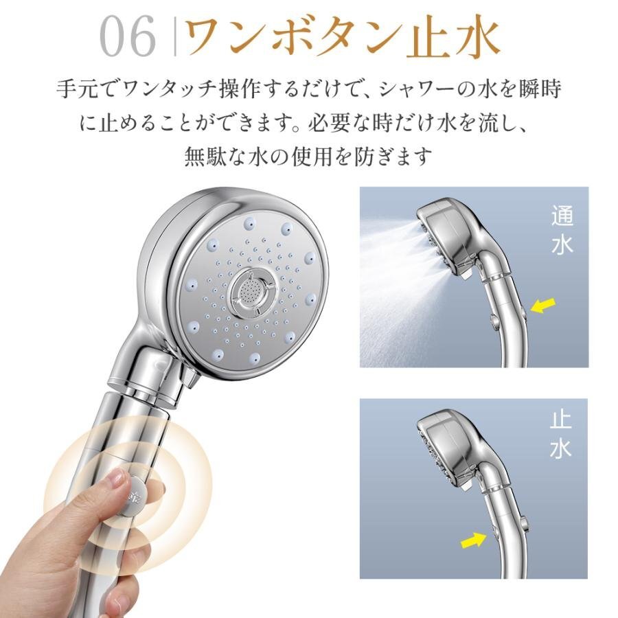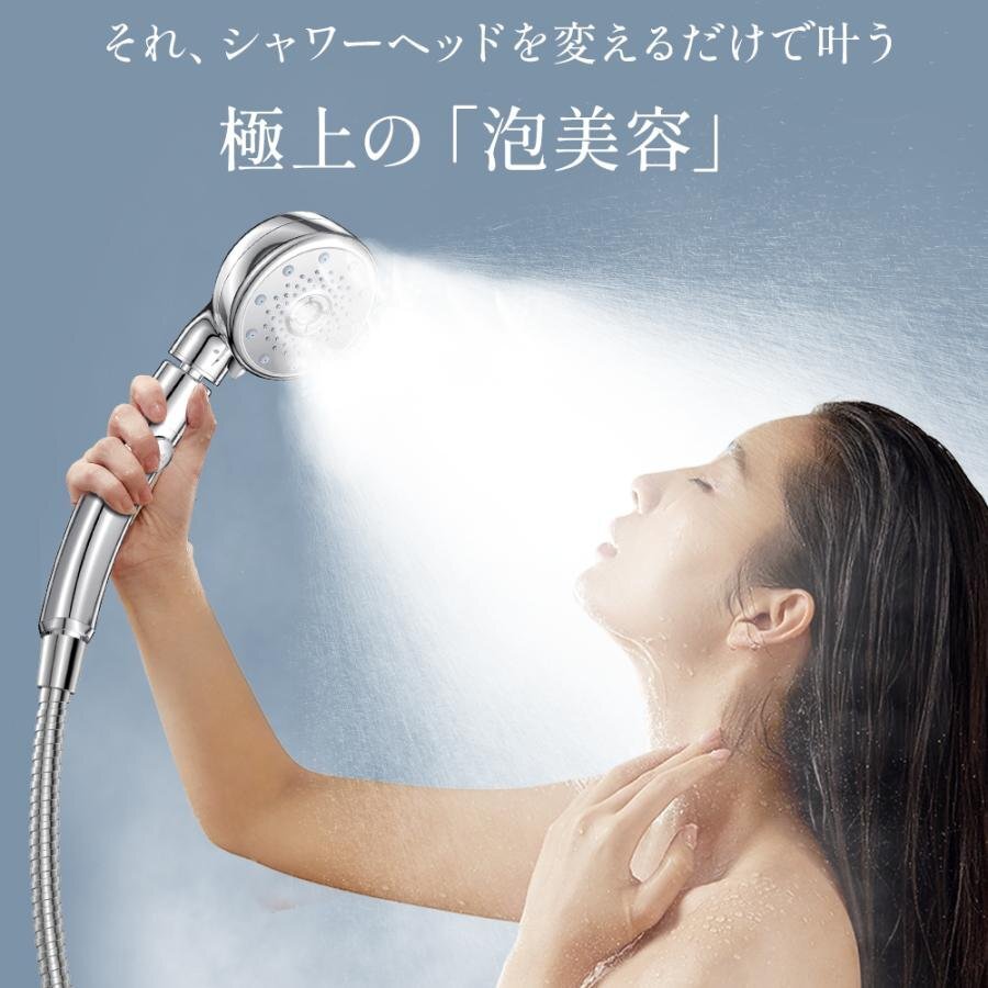 シャワーヘッド マイクロナノバブル シャワー 5段階モード 塩素除去 水流調整 止水ボタン 3D角度調整 手元ストップ アダプター付き