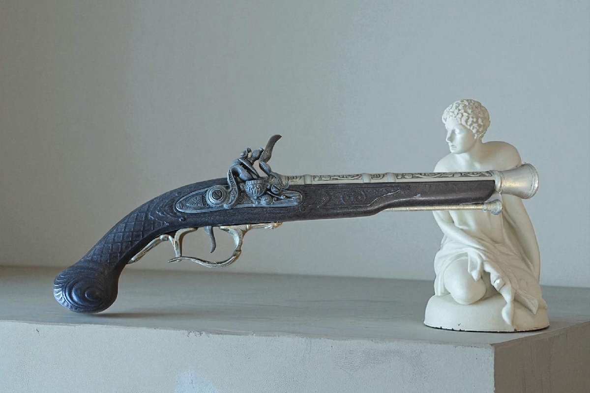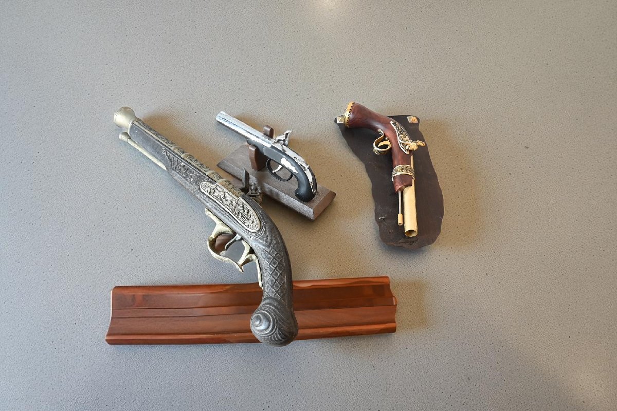 title:ピストル おもちゃの銃 3点セット クラシカルな文様柄 壁掛け ライター ディスプレイ オブジェ ヴィンテージ 古道具のgplus広島 2508i