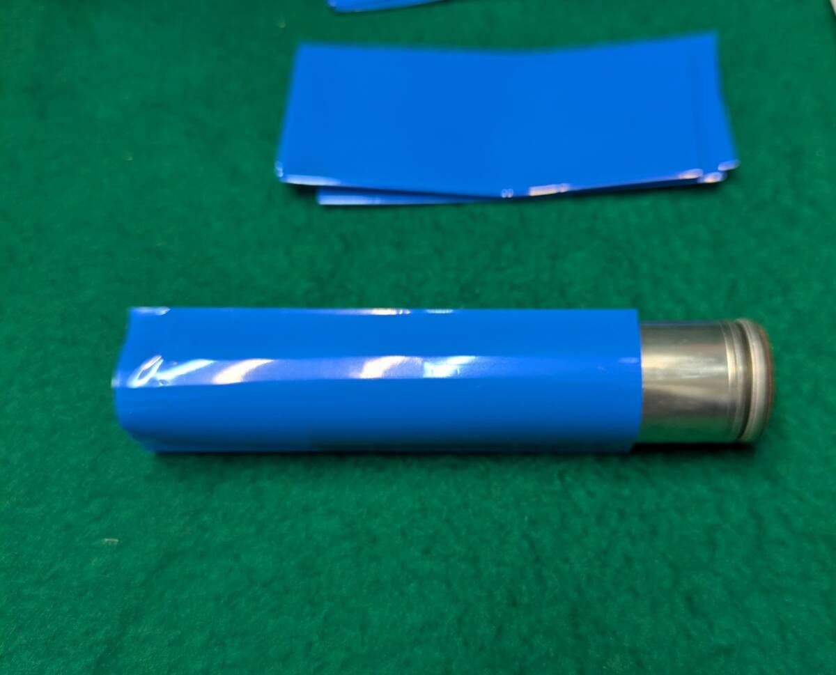 18650リチウム電池用カバー 長さ72mm熱収縮チューブ ブルー20枚とプラス電極絶縁リング20セット全国一律普通郵便85円。