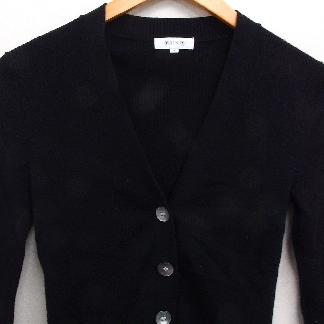 プラステ PLST リブ ニット カーディガン Vネック 無地 ウール M ブラック 黒 /FT33 レディース