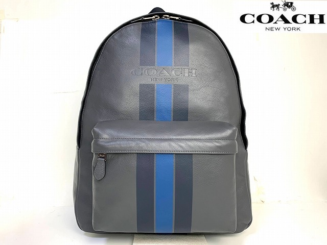 送料無料★ コーチ メンズ COACH チャールズ ヴァーシティ ストライプ レザー バックパック リュック デイバック