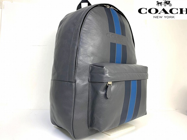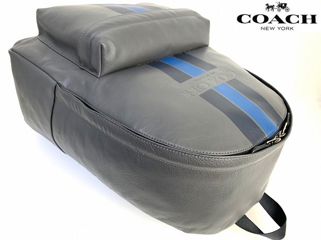 極美品★送料無料★ コーチ メンズ COACH チャールズ ヴァーシティ ストライプ レザー バックパック リュック デイバック