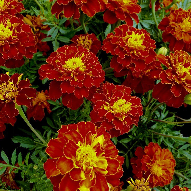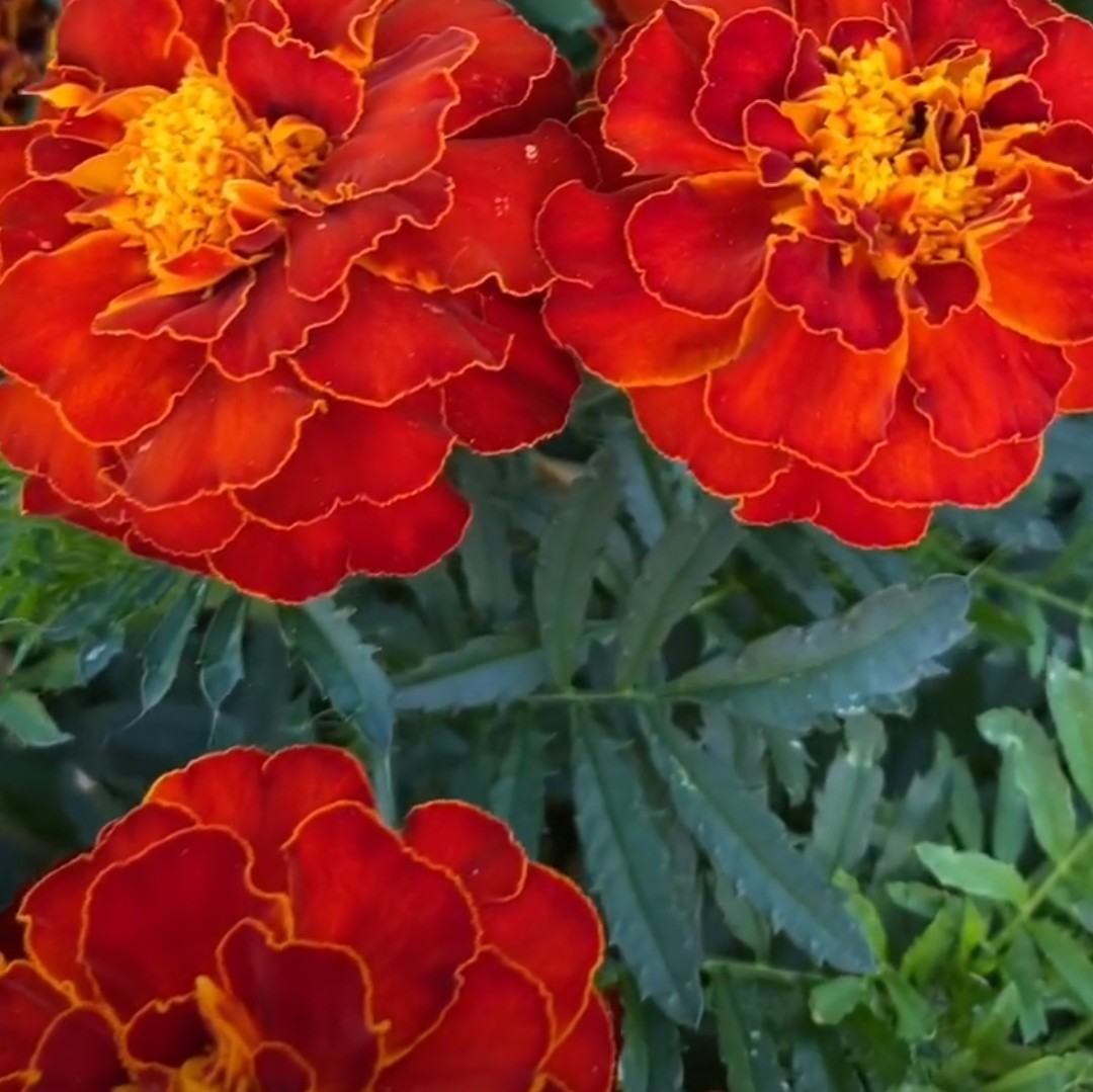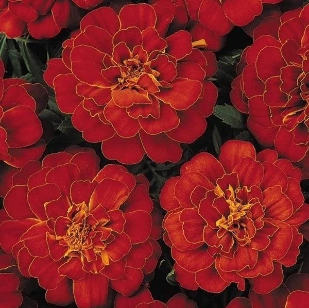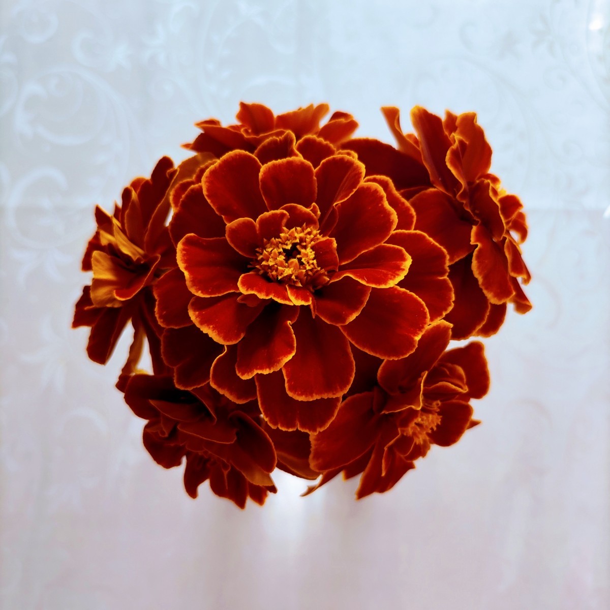 質感がある深い赤の花びら、周りに少し金色に囲まれているマリーゴールドです。とても綺麗で一目惚れ、可愛いながら高級感もあります。切花にもできます。花瓶に入れて頂き、お水だけあれば一週間くらい元気なお花をお家中にも観賞できます。お庭お玄関に植えて頂き、虫除けにも効果があります。いかがでしょうか?ぜひ育て見てくださいませ。o((*^▽^*))o