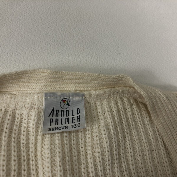 アーノルドパーマー Arnold Palmer RENOWN レナウン オールド レタード 畦編み コットン混 ニット カーディガン ワッペン付 160 男女兼用 です。
