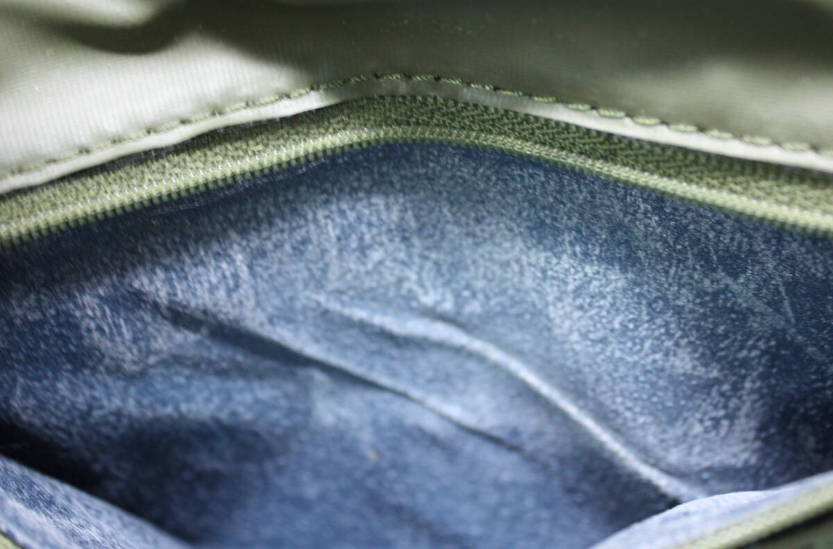 微細な薄汚れ、内側のポケットの内生地に経年による薄い剥げ、内生地に薄い色あせが見られます。