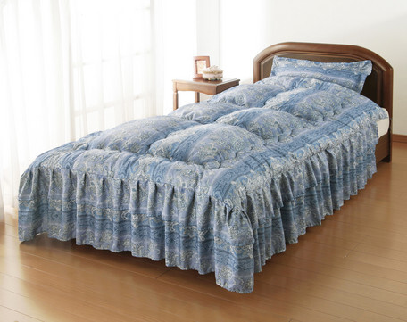 | 即決可@新品シルク混 ダブルフリル ベッド布団 同柄枕カバー付き ダブル/ブルー | ||||||||||||