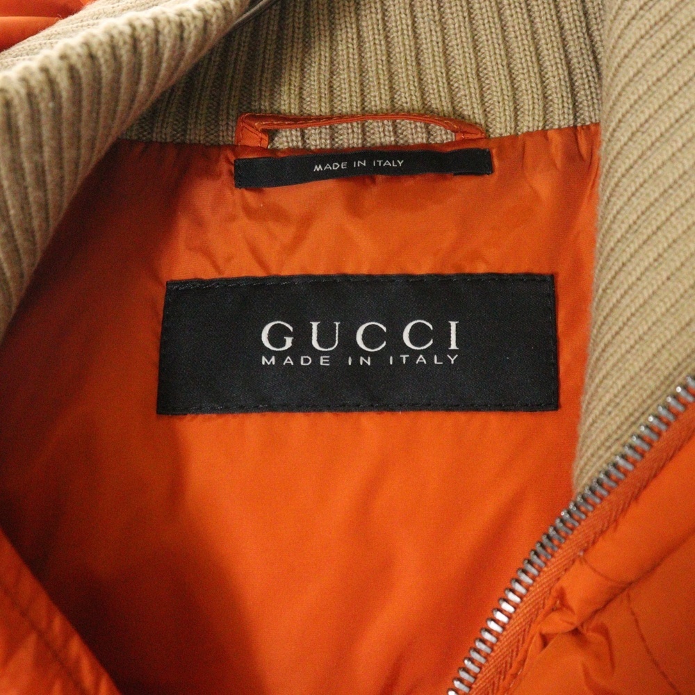 GUCCI グッチ レザーパッチナイロンフーディダウンベスト 298068 Z9687 オレンジ