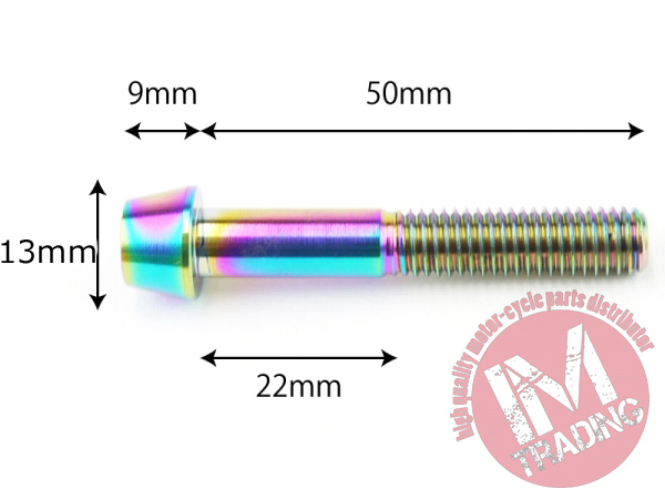 64チタン合金ボルト M8×50mm P1.25 テーパーキャップ ゆうパケット対応 焼き色有り Ti-6Al-4V