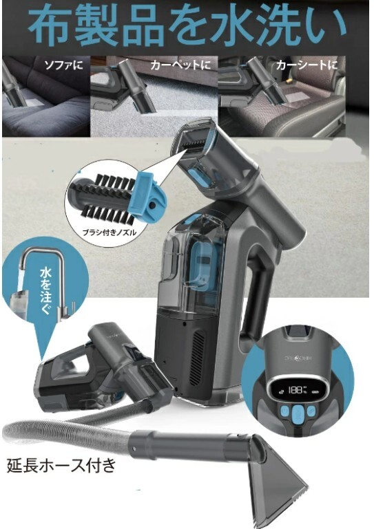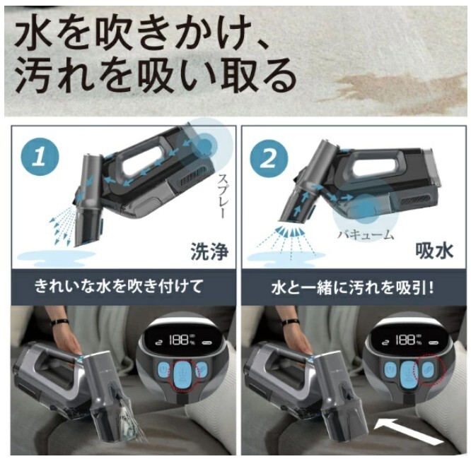 リンサークリーナーハンディ リンサークリーナーコードレス 水で洗う バキュームクリーナー 水 カーペット クリーナー コードレス 掃除機