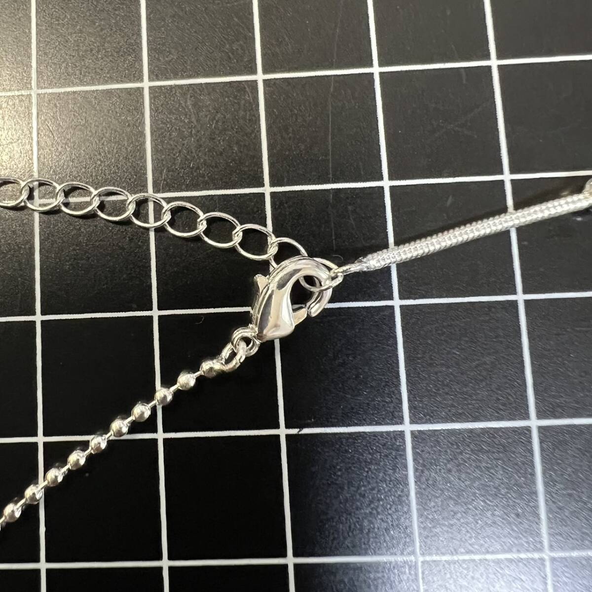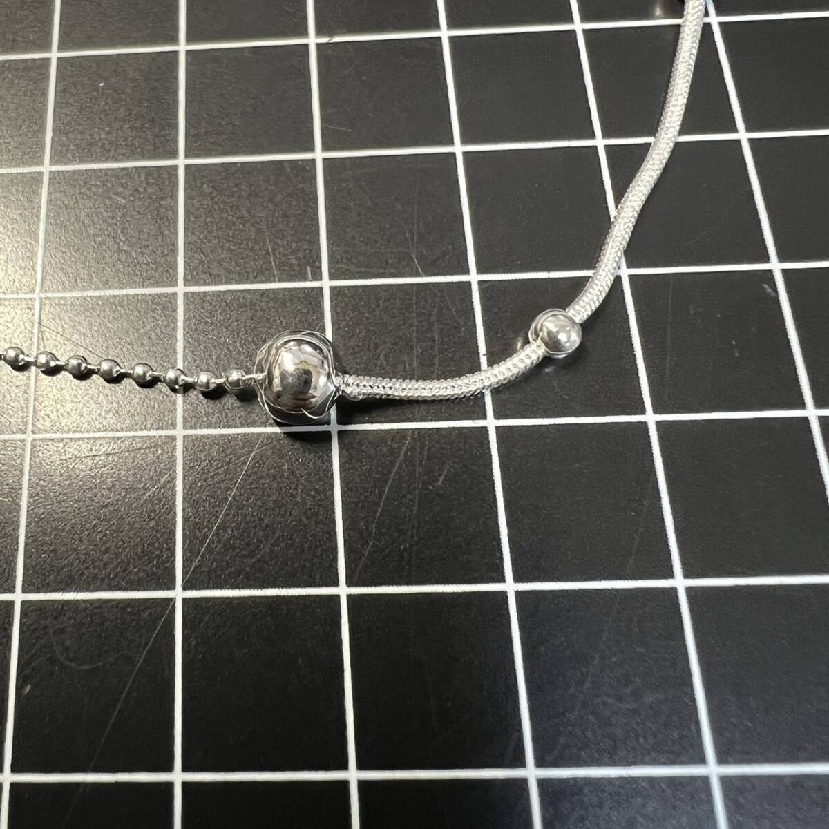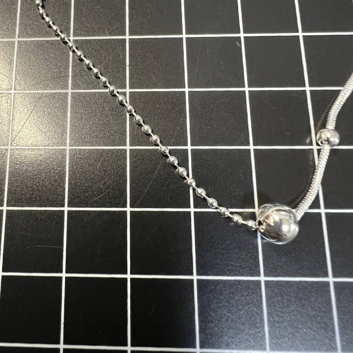 ラウンビーズが並んだシルバーチェーンネックレスです。