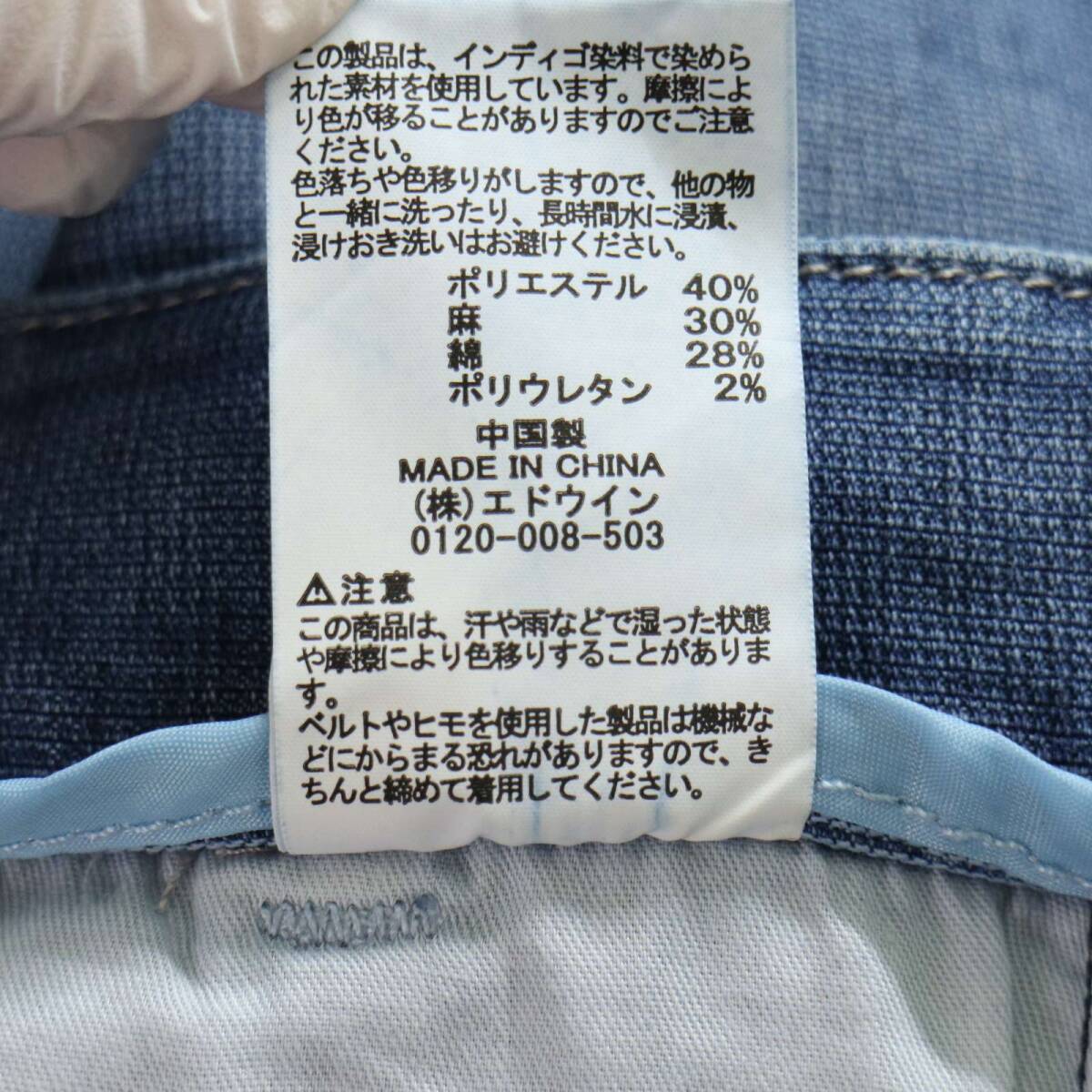 EDWIN エドウィン 春夏 ストレッチ 麻 リネン混★ USED加工 イージー ストレッチ デニム パンツ ジーンズ Sz.XS レディース