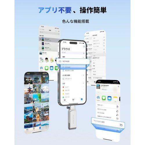 【専用アプリ不要、写真保存に便利なUSBメモリ】弊社のUSBメモリは、アプリをダウンロードする必要はなく、携帯を挿入すれば、システムに付属している「ファイル」アプリ、または「ファイルマネジャー」で直接データ移行できます。アプリフリー時代に入ると、USBメモリのデータ保存は安心して省力化されます。