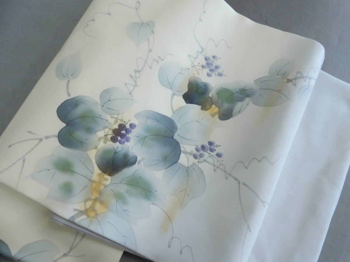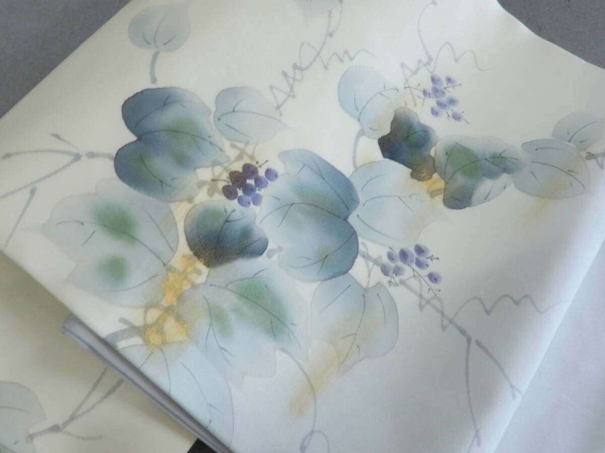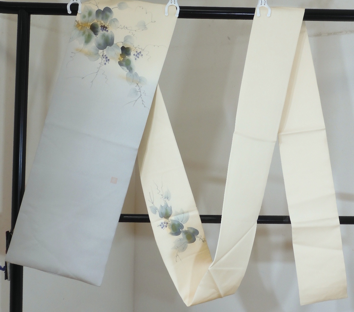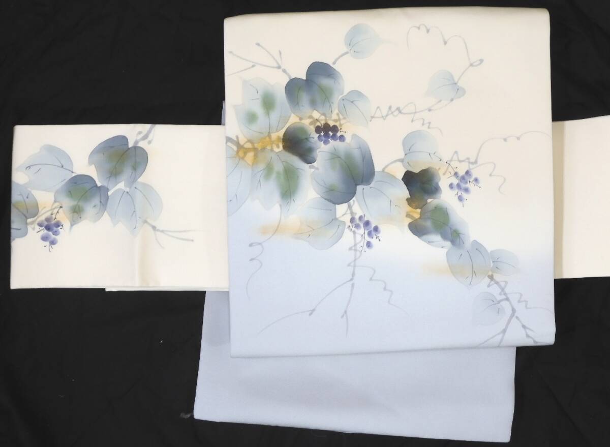 <銀の斧>正絹・作家銘あり・長尺ぼかし描塩瀬名古屋帯