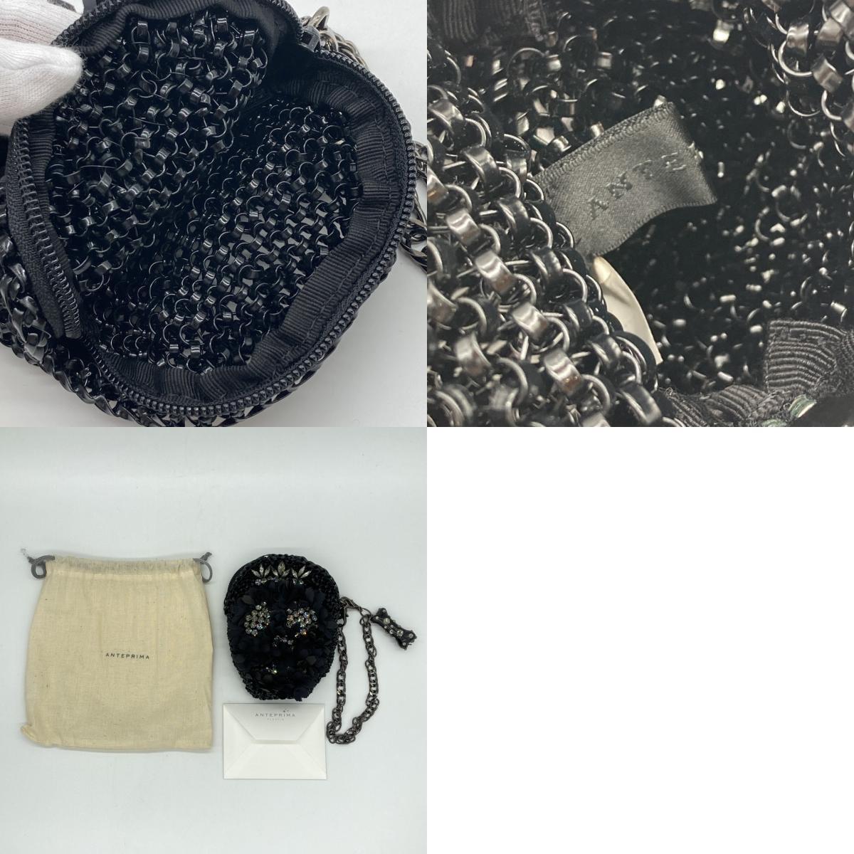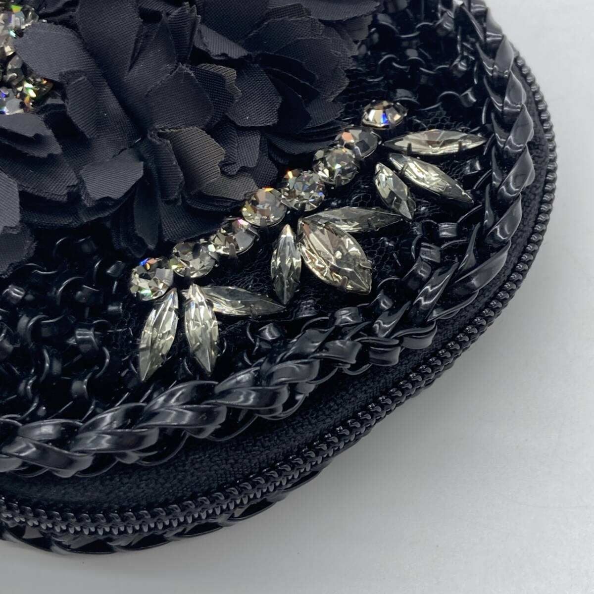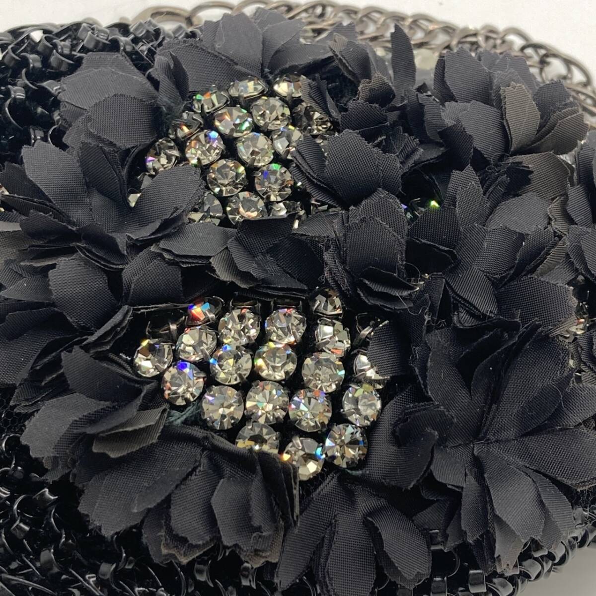 ANTEPRIMA アンテプリマ ポーチ ワイヤーバッグ ブラック フラワー ラインストーン チャーム付き |
