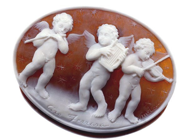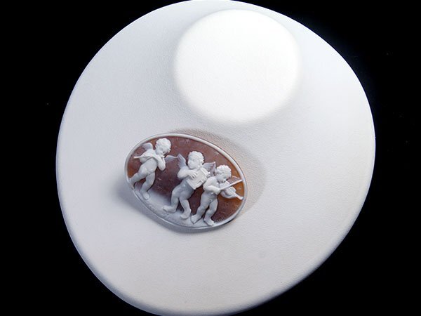 三人の天使の彫刻が魅力的なシェルカメオルースを激安価格で特別大放出致します!