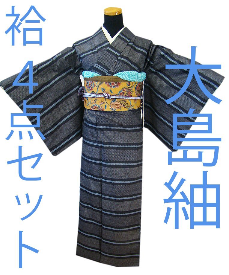 | ちょっと一言 | お顔映りもきりりと演出する彩の暮らしのお洒落着に重宝する人気の大島紬の豪華4点セットです。 帯や小物次第で自分らしい個性を演出でき幅広いコーディネートをお愉しみ頂けるかと思います。 |