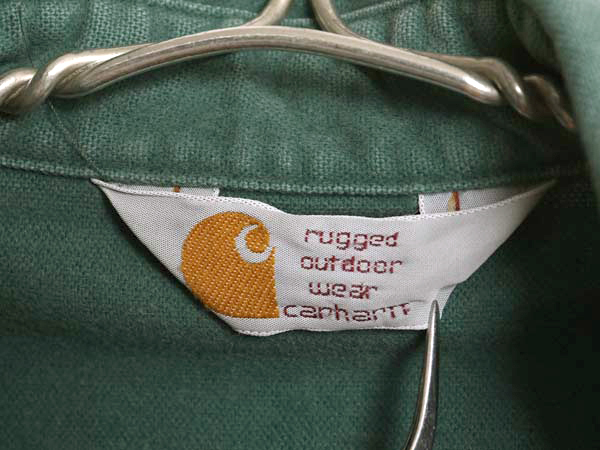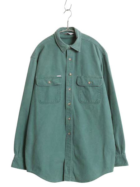 商品名 | 80s カーハート コットン シャモア クロス シャツ メンズ L 旧タグ ヴィンテージ ワーク 長袖シャツ ネルシャツ フランネル 無地 グリーン |