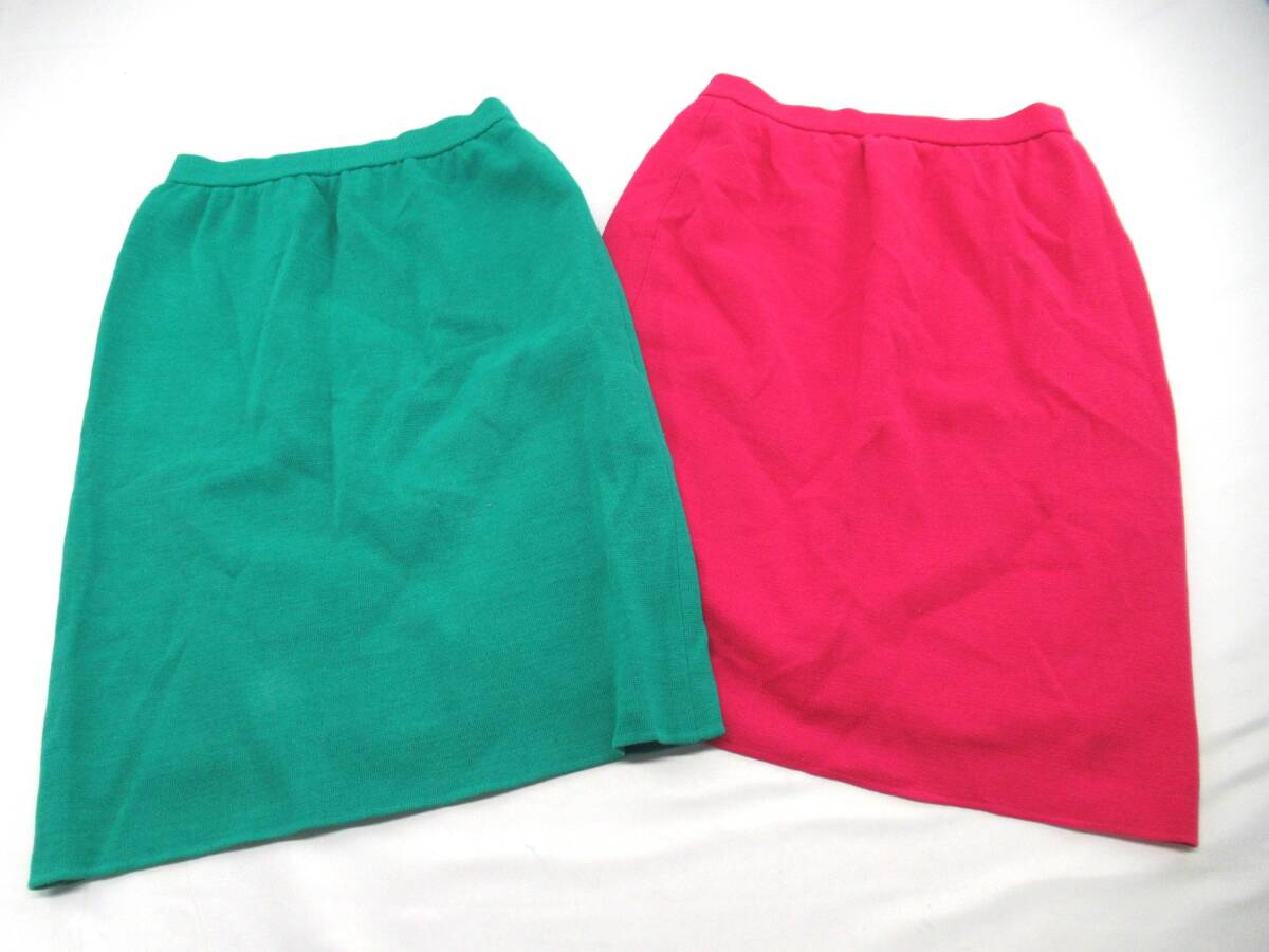 ★【S送900円】2644 YVES SAINT LAURENT イヴサンローラン イージーニットスカート 2枚組 裏地あり PNK/GRN 9号