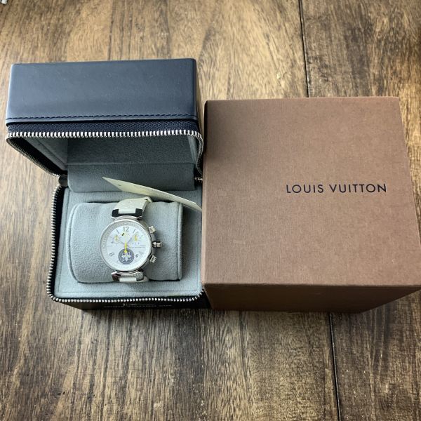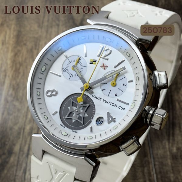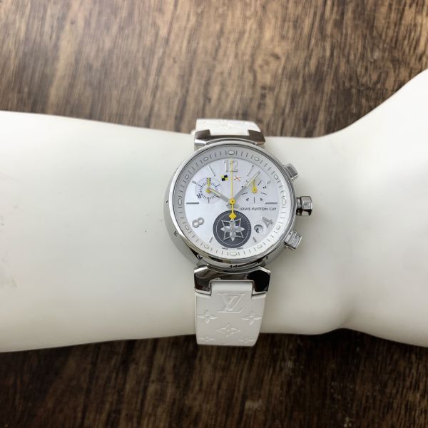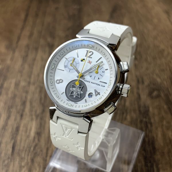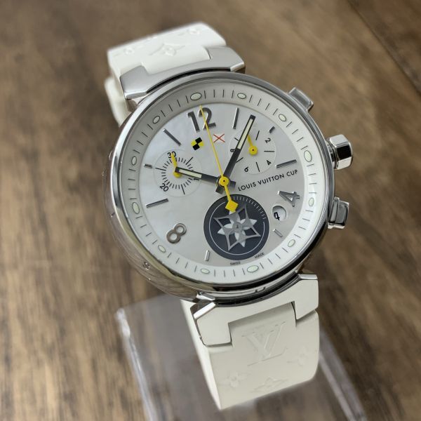LOUIS VUITTON/ルイヴィトン タンブール MM ラブリーカップ Q132C レディース クロノ ホワイトシェル 箱付 クロノグラフ シェル