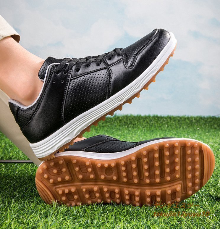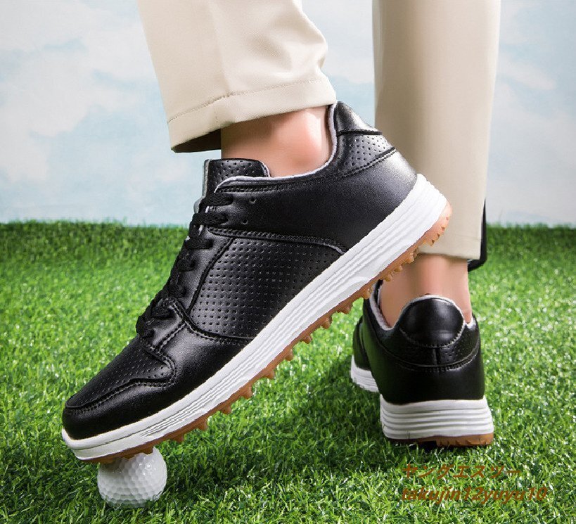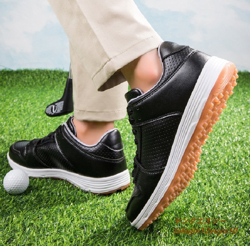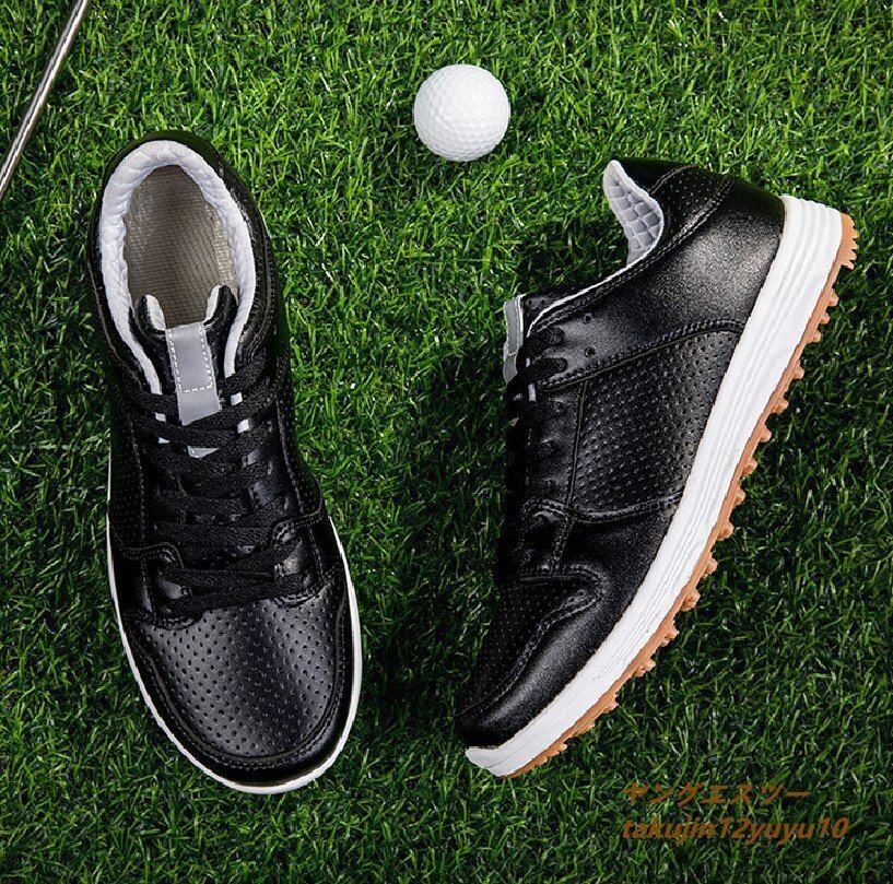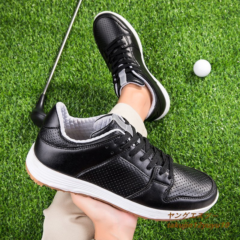 絶賛★ゴルフシューズ 新品スニーカー カップル男女兼用 ウォーキングシューズ 運動靴 超軽量スポーツシューズ 通気性 防滑 耐磨 黒 27.5cm
