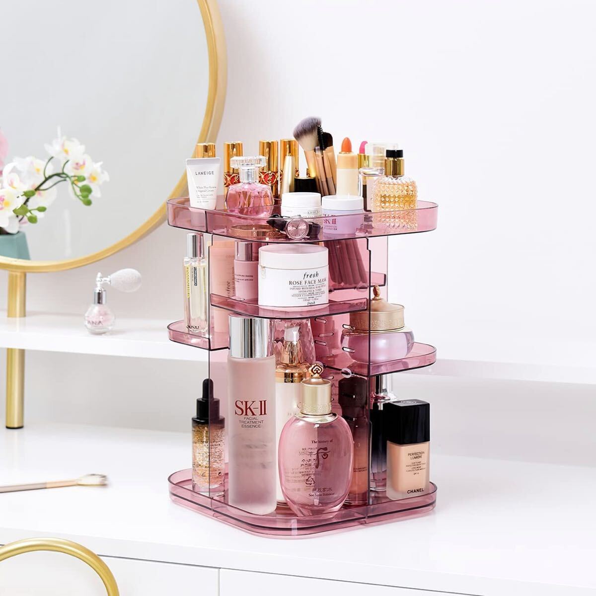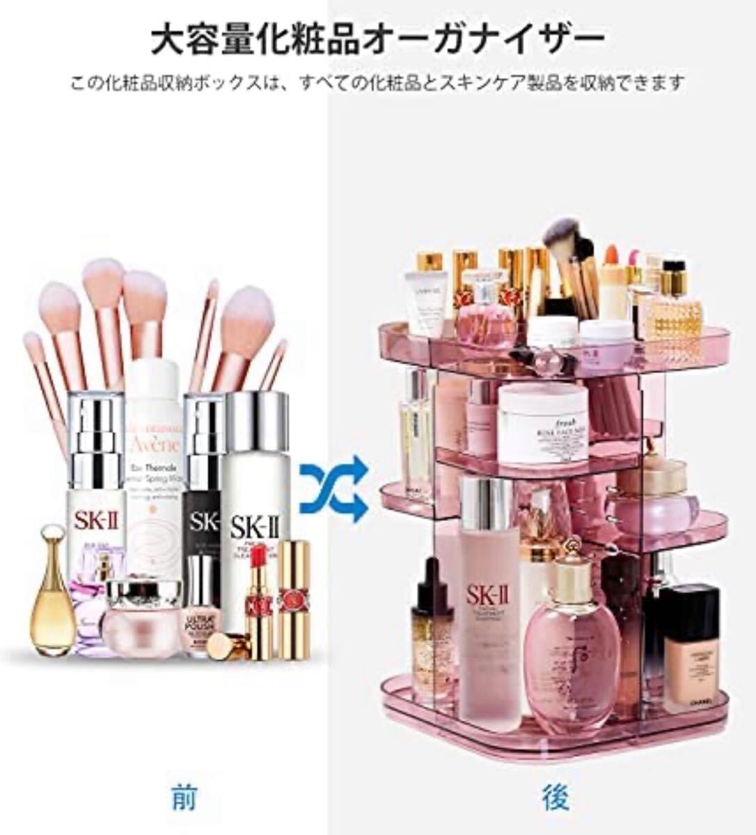 *360度回転と安定 - この化粧品収納ボックスは、360度回転するデザインを使用しており、ノイズはありません.強化収納ボックスの安定した底板は、化粧ボックスがスムーズかつ静かに回転します。 化粧品やアクセサリーを保管するのに便利です.数秒で簡単に化粧品を見つけるのに役立ちます。 そしてすぐにそれらを元の位置に戻します