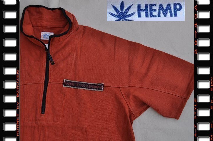 HEMP ヘンププルオーバーショートスリーブシャツ オレンジ サイズM 新品厚めの麻素材