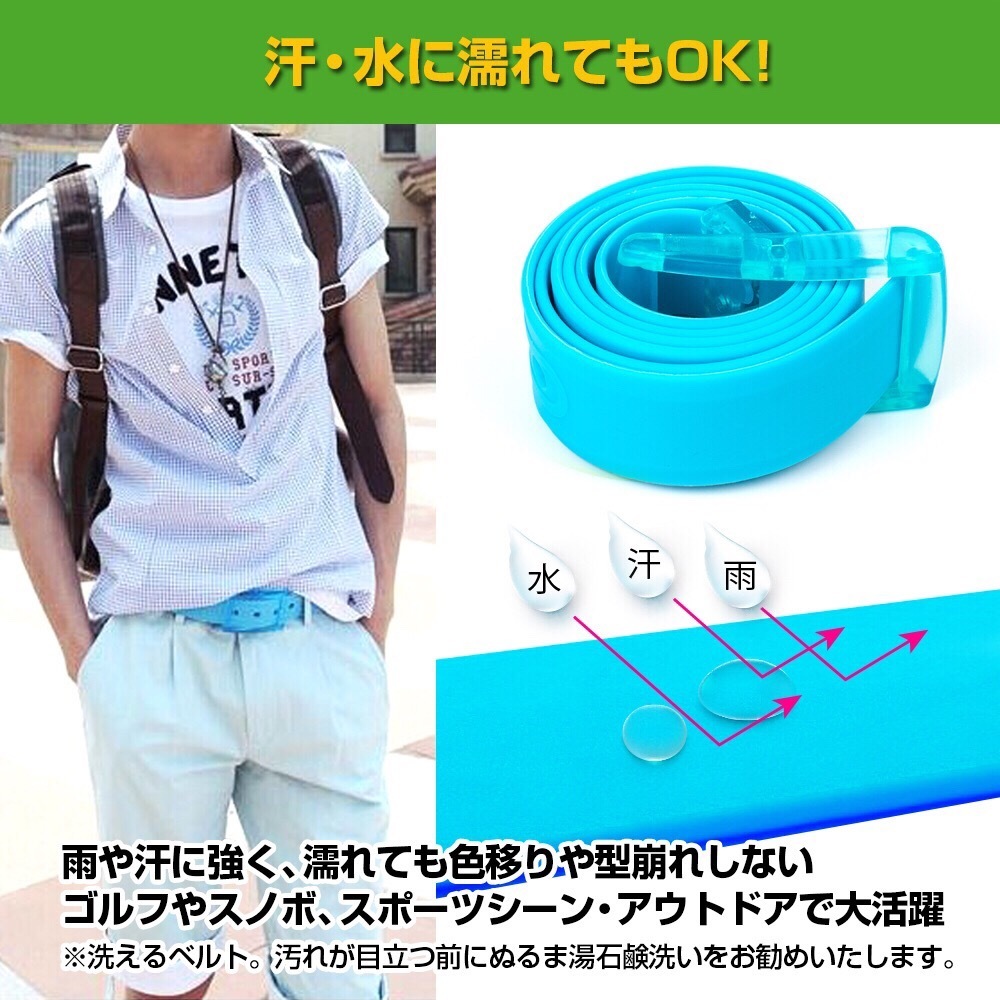 ラバーベルト ゴルフ ベルト カラフル カラー シリコン ゴム スポーツ アウトドア 登山 釣り メンズ レディース ブルー 青 送料無料