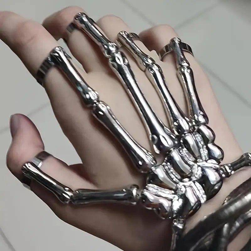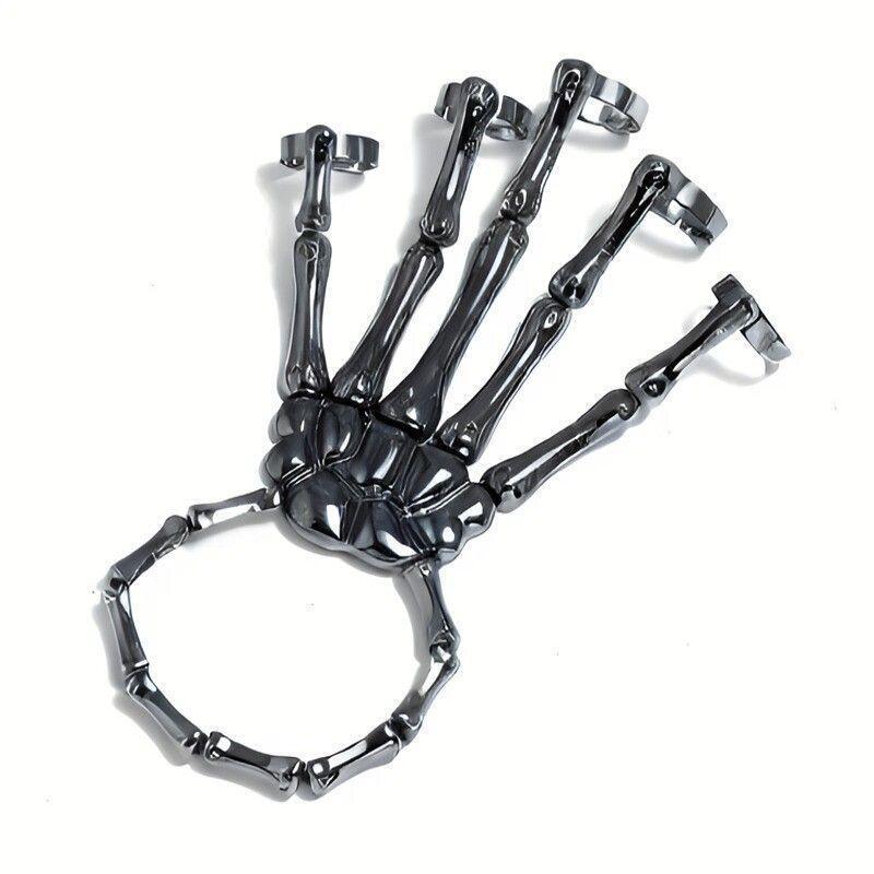 エッジの効いたゴシックデザインが魅力のスカルモチーフフィンガーカフ。