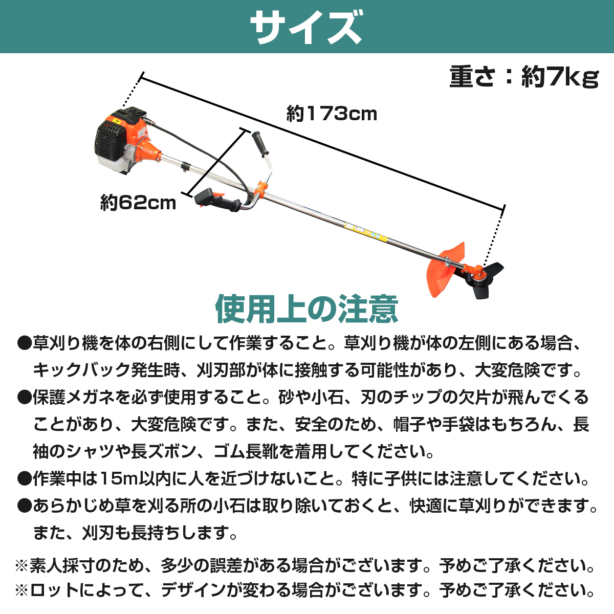 作業中はキックバックなどによる転倒やケガに十分な注意が必要です。