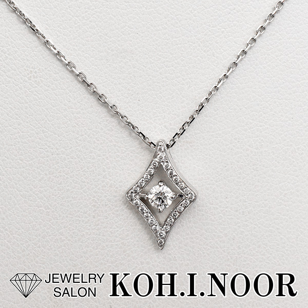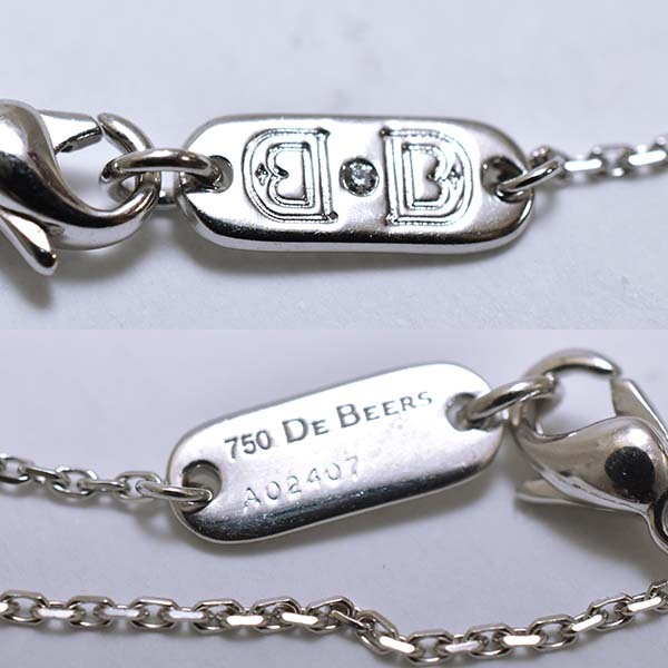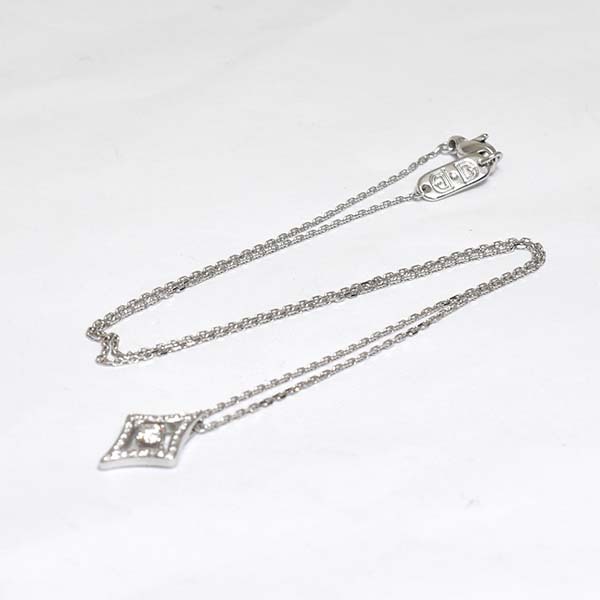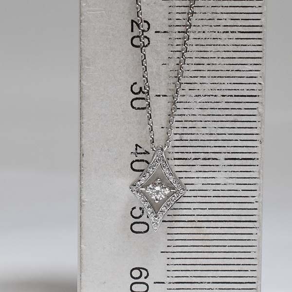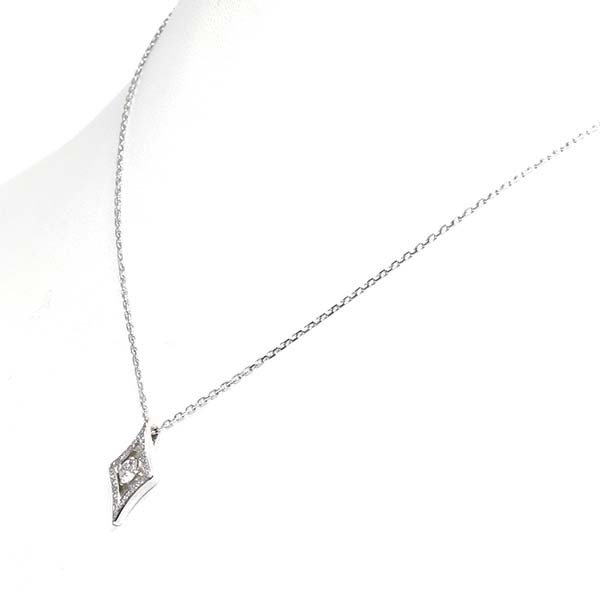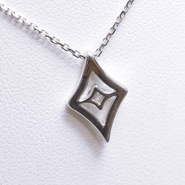 ひし形モチーフの中に1石のダイヤをセットしたデビアスの18金ホワイトゴールド製ネックレス。