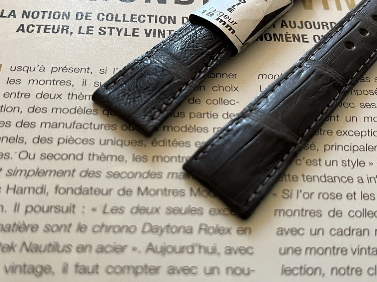 ◆デッドストック品 ヴィンテージ ダークグレー(マット) 18mm リアルクロコ