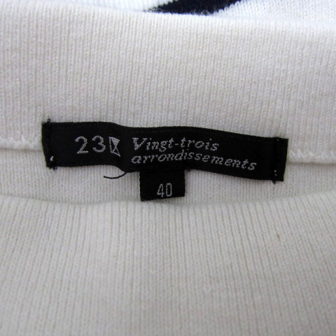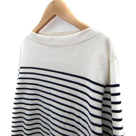 23区 オンワード樫山 ニット カットソー 長袖 ボートネック ボーダー柄 40 L 白 ホワイト 紺 ネイビー /SY42 レディース