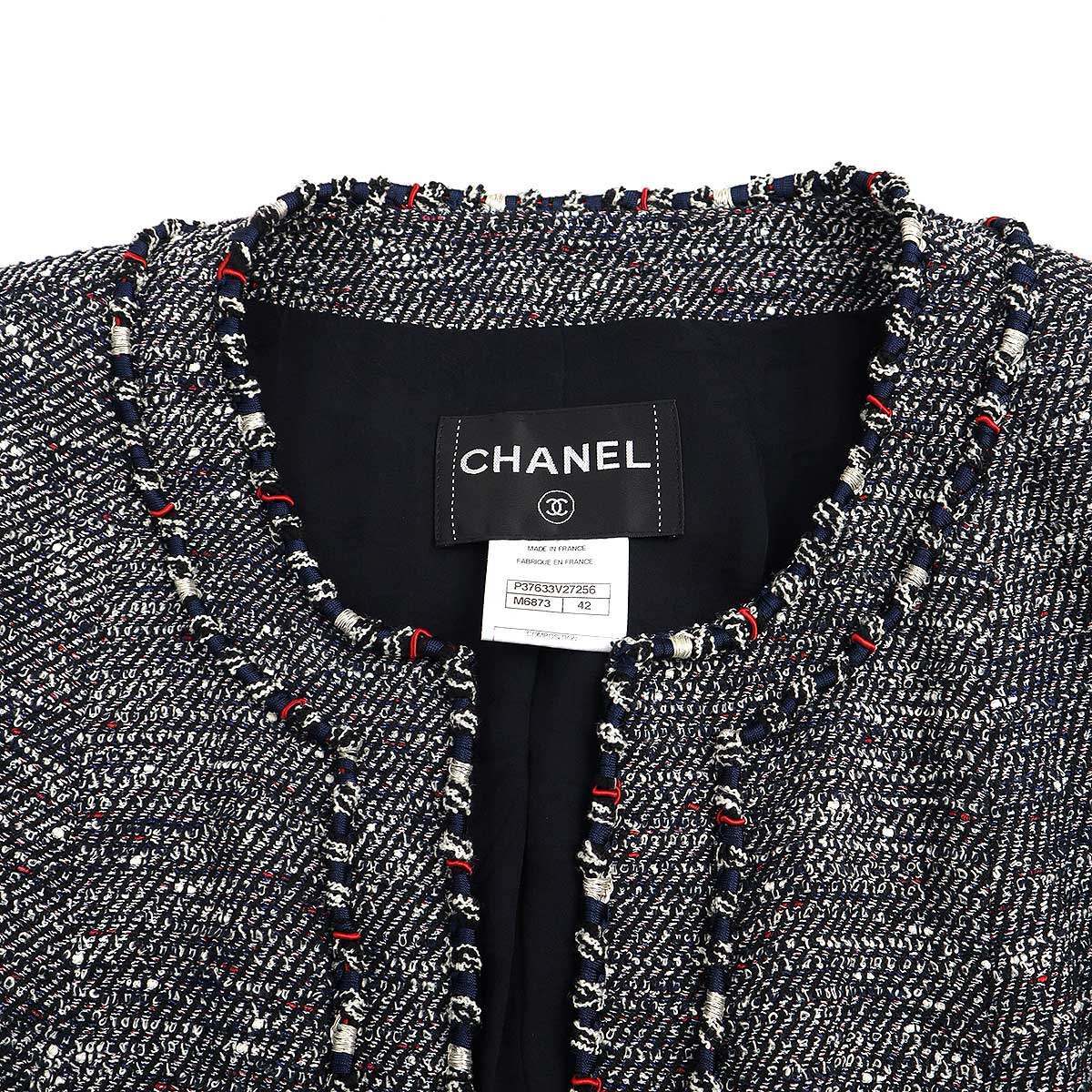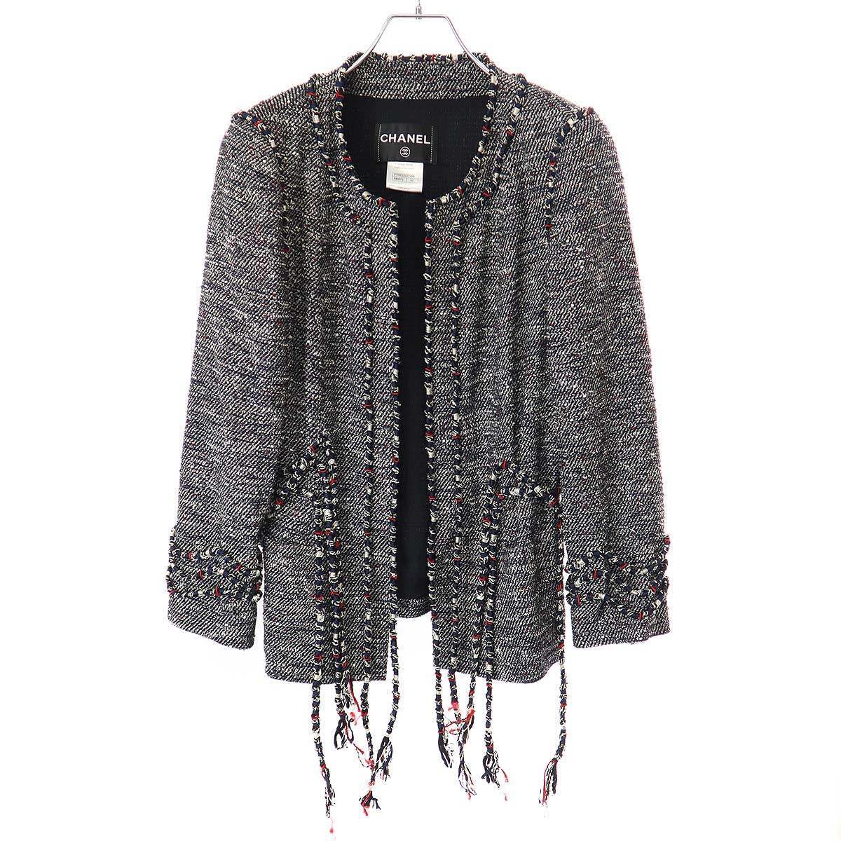 CHANEL シャネル ノーカラーツイードコードジャケット P37633V27256 ネイビー系 42 IT0R9CVL4R9K