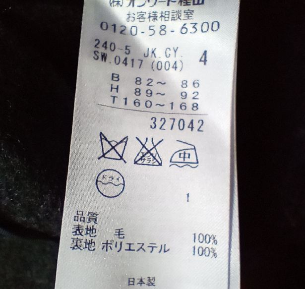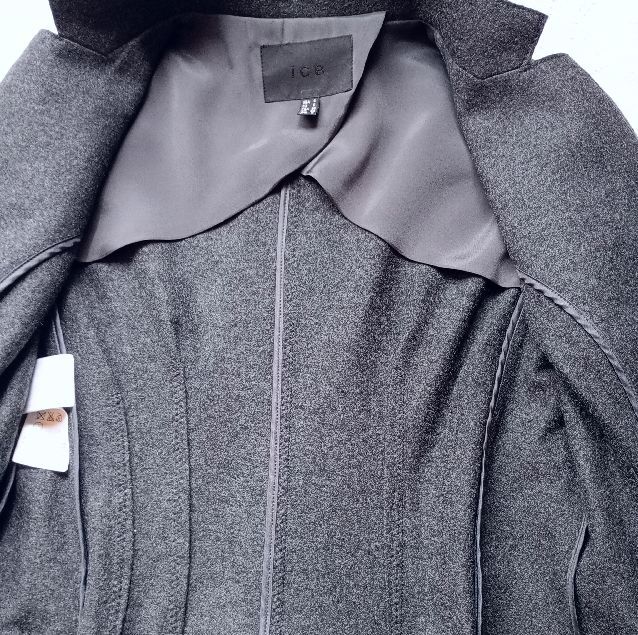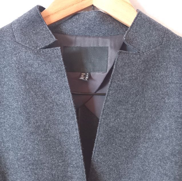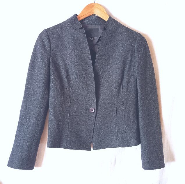 ICB 秋冬向け ウール100% ジャケット スタンドカラー ノーカラー Vネック サイズ38 グレー