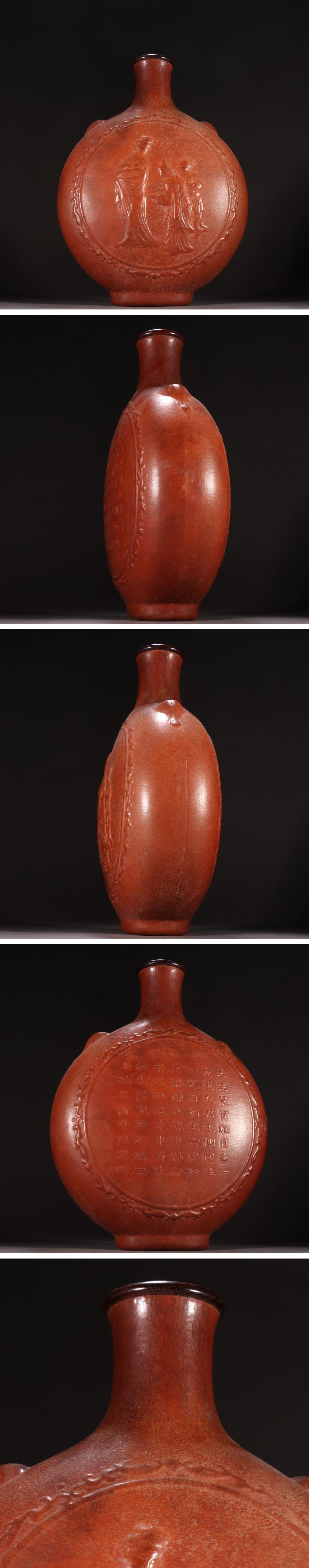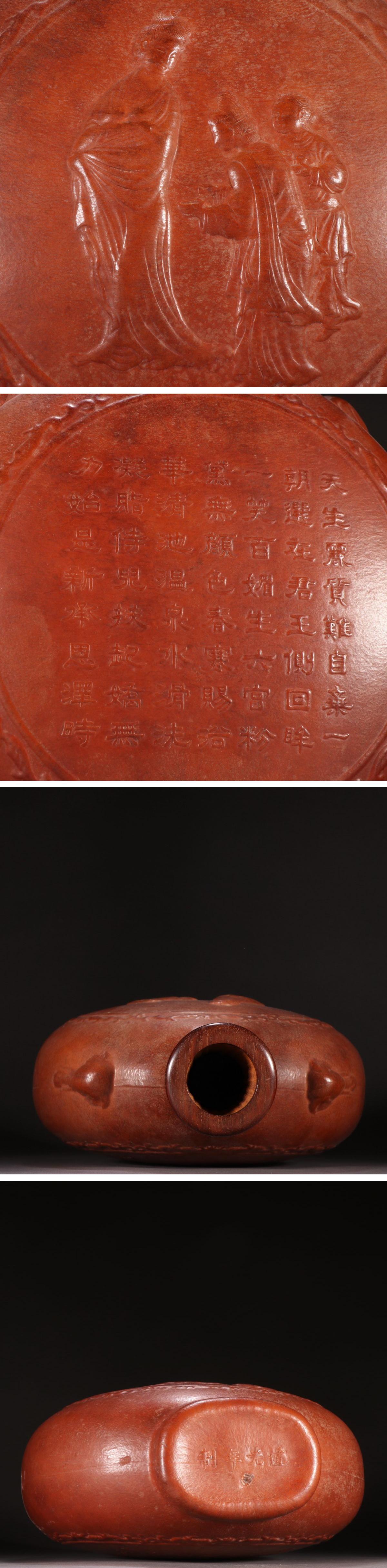 【清】某有名オークション購入 清時代 天然匏器・瓢箪 人物漢詩紋抱月瓶 古置物 中国伝来 古美術 時代コレクション7L8-AT15